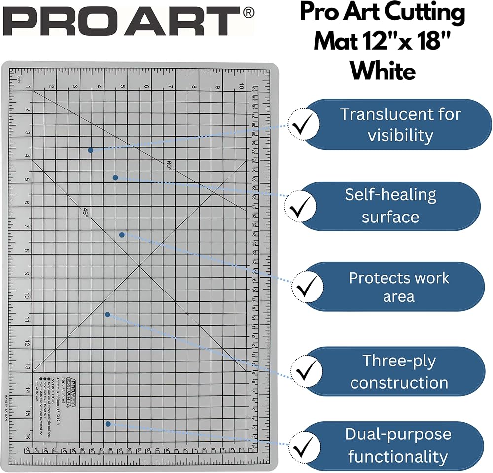 PRO ART، بساط تقطيع مقاس 12 بوصة × 18 بوصة، أبيض شفاف