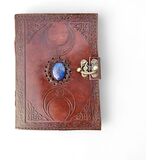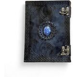 • تصميم أنيق: ارفع أناقتك مع مجلة عتيقة ذات غطاء جلدي بني داكن. إنه مزين بنقش Triplemoon بشكل جميل على الجهة الأمامية ونمط Zeek Zeke الفريد على الظهر. إن وجود حجر اللازورد في المركز يلهم الإبداع واليقظة أثناء جلسات الكتابة.