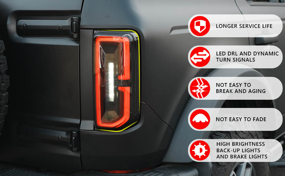 الضمان: إذا واجهت أي مشاكل مع استبدال الضوء الخلفي لسيارة Ford Bronco 2021 2022 2023 2024، فيرجى الاتصال بنا وسنقدم خدمة ما بعد البيع مرضية.
