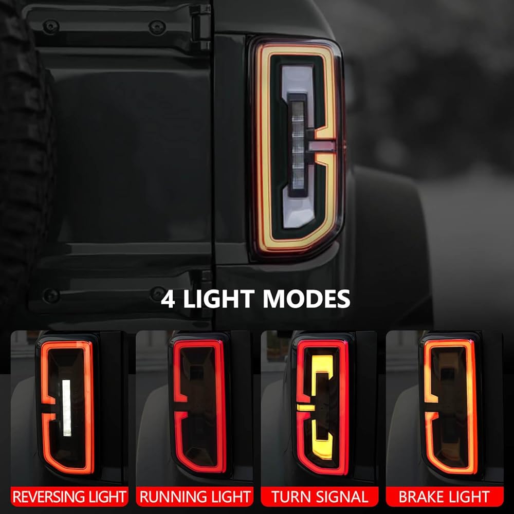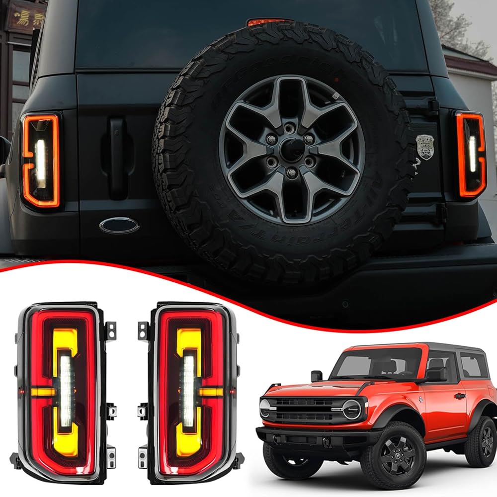الإعداد: المصابيح الخلفية متوافقة مع موديلات 2021 2022 2023 2024 Ford Bronco 2 باب و4 أبواب. مناسبة خاصة لطراز 2021+ Ford Bronco هالوجين الأصلي. تنبيه: لن يناسب Bronco Sport أو Bronco Raptor. يرجى تأكيد سنة الطراز الخاص بك قبل الشراء .