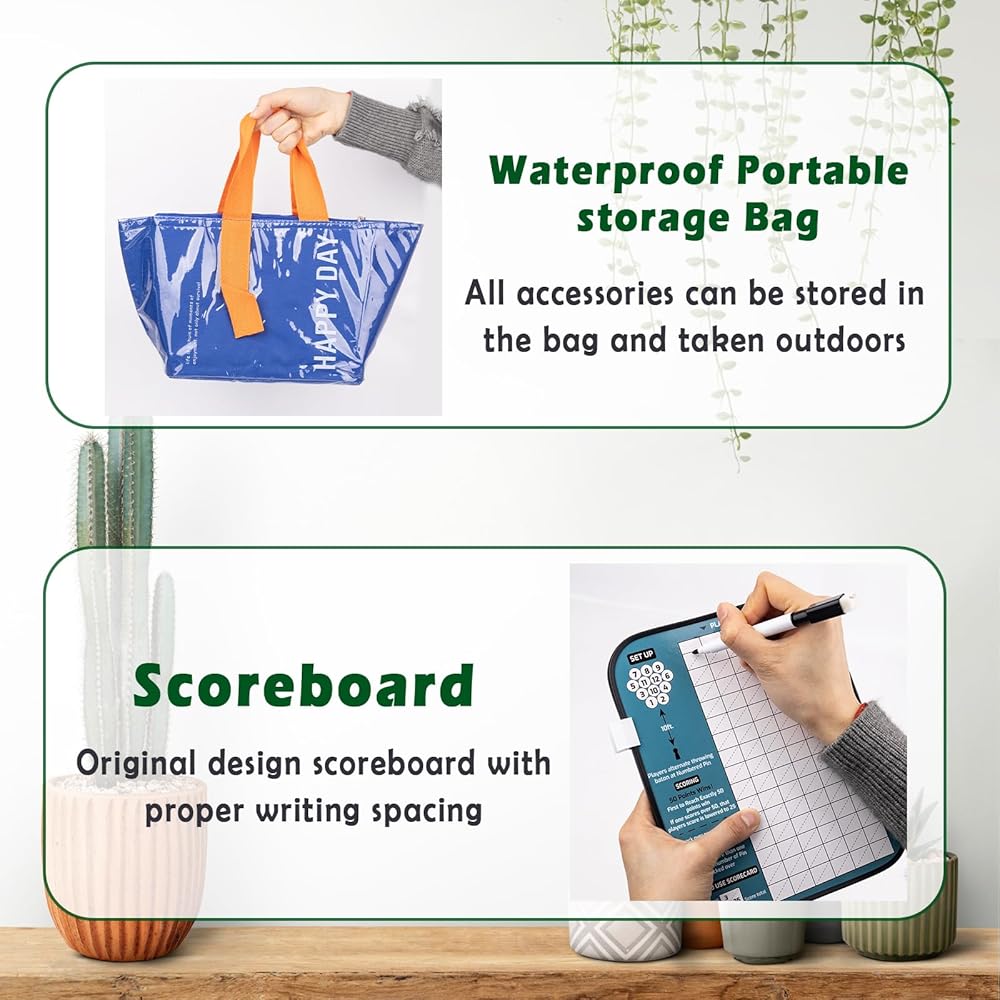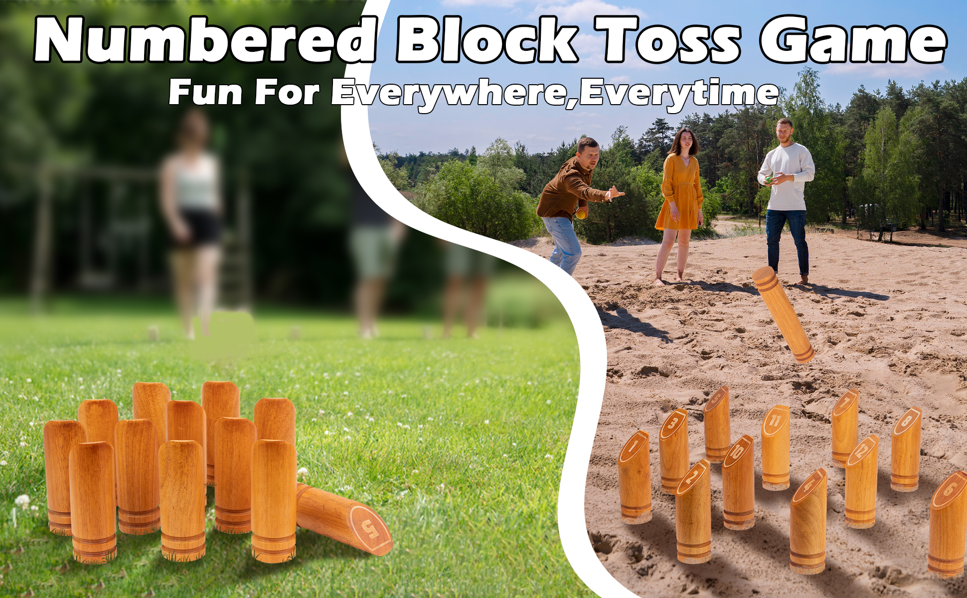 مناسبة للعديد من المناسبات: لعبة الرمي المكعبات المرقمة مثالية للعب في العديد من السيناريوهات، يمكن إعداد لعبة الرمي ذات الحجم القياسي بثبات دون الوقوع في مجموعة متنوعة من الملاعب، مثل السجاد والأسطح الخرسانية والعشب القصير، المروج والساحات الخلفية والشواطئ. إنها اللعبة الخارجية المفضلة للاعبين أو أكثر وهي مناسبة للعائلات الكبيرة أو تجمعات الأصدقاء والأنشطة الجماعية