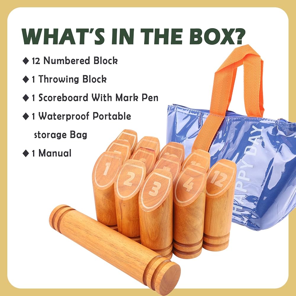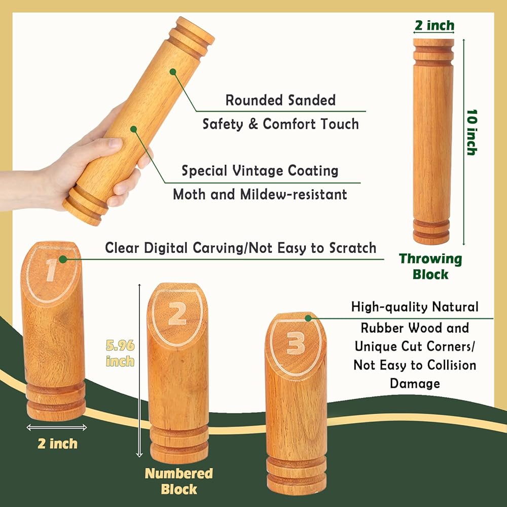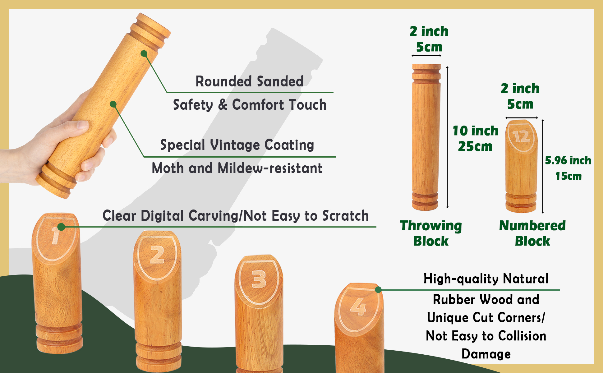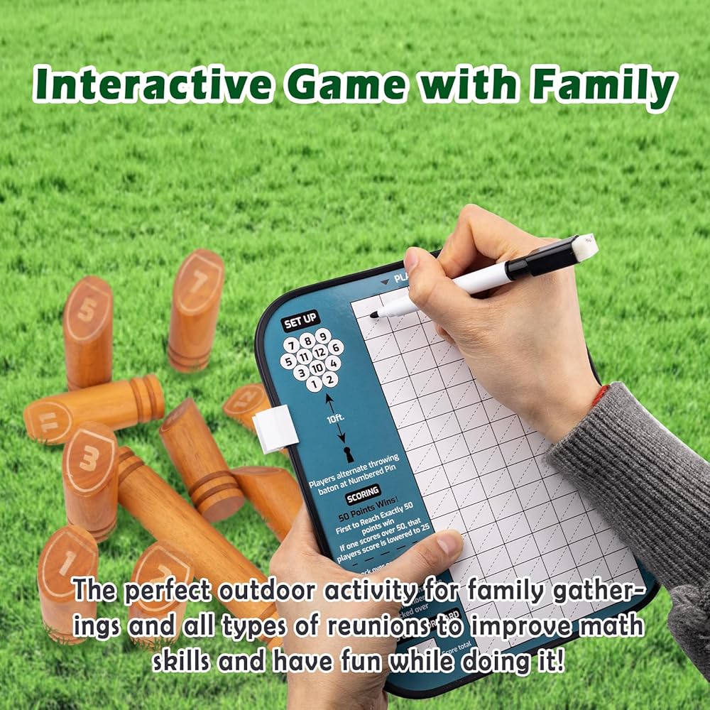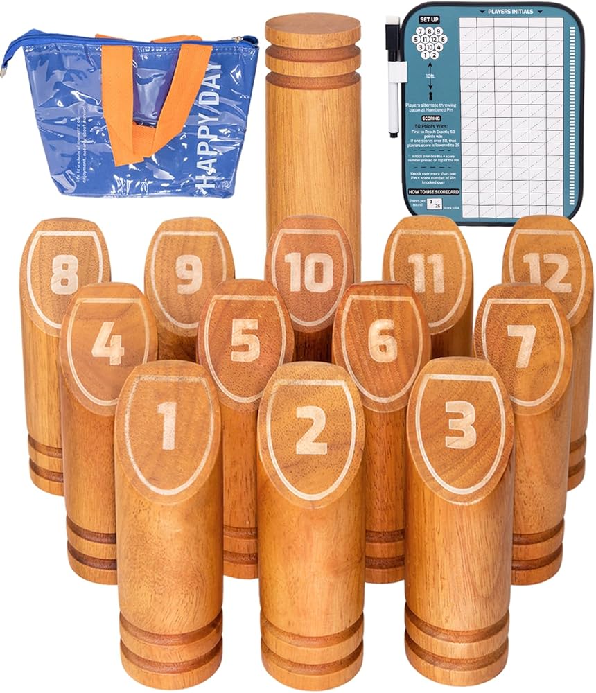 【لعبة رمي المكعبات الخشبية الفريدة من نوعها】يتميز التصميم الأصلي للعبة الرمي المرقمة الكلاسيكية في الهواء الطلق بقواعد بسيطة للعب معًا في مجموعة متنوعة من الإعدادات! لعبة المكعبات المرقمة تشبه لعبة فايكينج كوبو، وتشتمل المجموعة على 12 مكعب دبابيس مرقمة، و1 مكعب رمي، و1 لوحة نتائج وقلم تحديد، و1 حقيبة تخزين محمولة مقاومة للماء بسحاب، مما يجعل المجموعة الكاملة ذات قيمة أفضل مقابل المال!