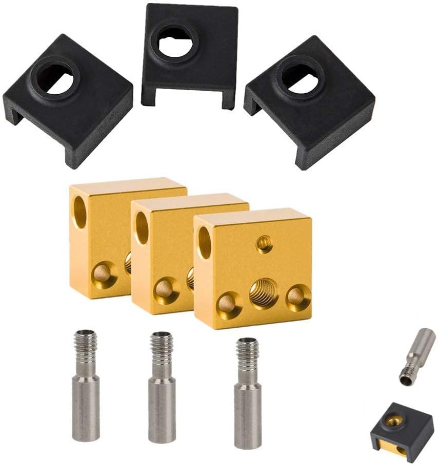 أجزاء طابعة ثلاثية الأبعاد من Ender جوارب سيليكون/كتلة سخان من الألومنيوم/حلق من الفولاذ المقاوم للصدأ لمجموعات الطارد MK7 MK8 Ender 3/Ender 3 Pro/Creality CR-10 /CR10S /S4 /S5 (3 حزم)
