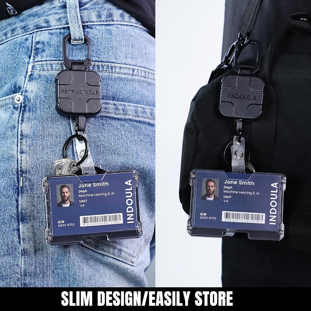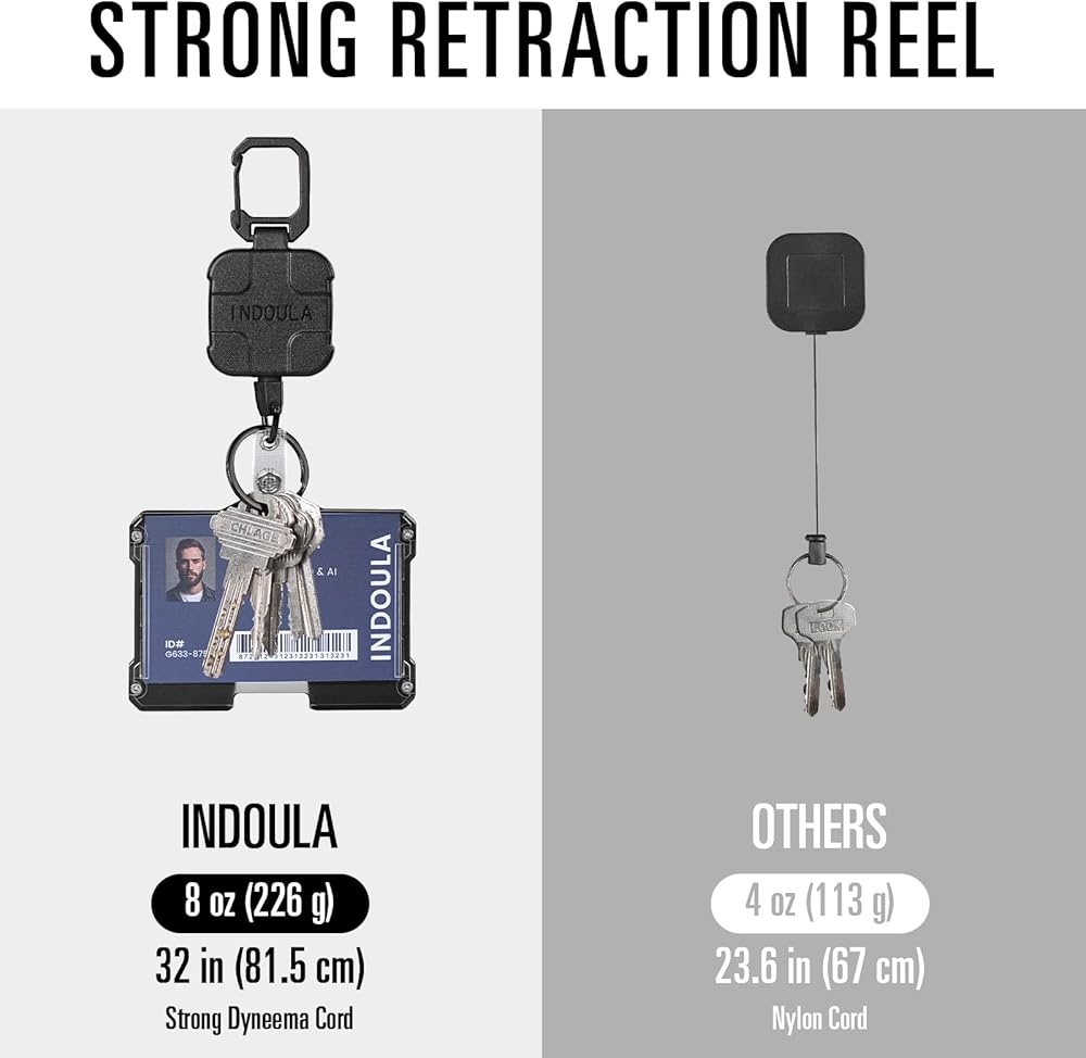 سلك ممتد 32 بوصة: يحتوي مشبك حامل شارة INDOULA القابل للسحب على سلك عالي الجودة بطول 32 بوصة يمتد وينزلق بسلاسة لسهولة الوصول، ويمكن أن يساعدك على سحب المفاتيح/الشارات وفتح الأبواب دون الحاجة إلى فصل المفاتيح.