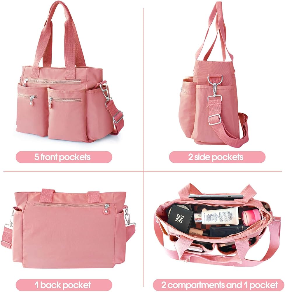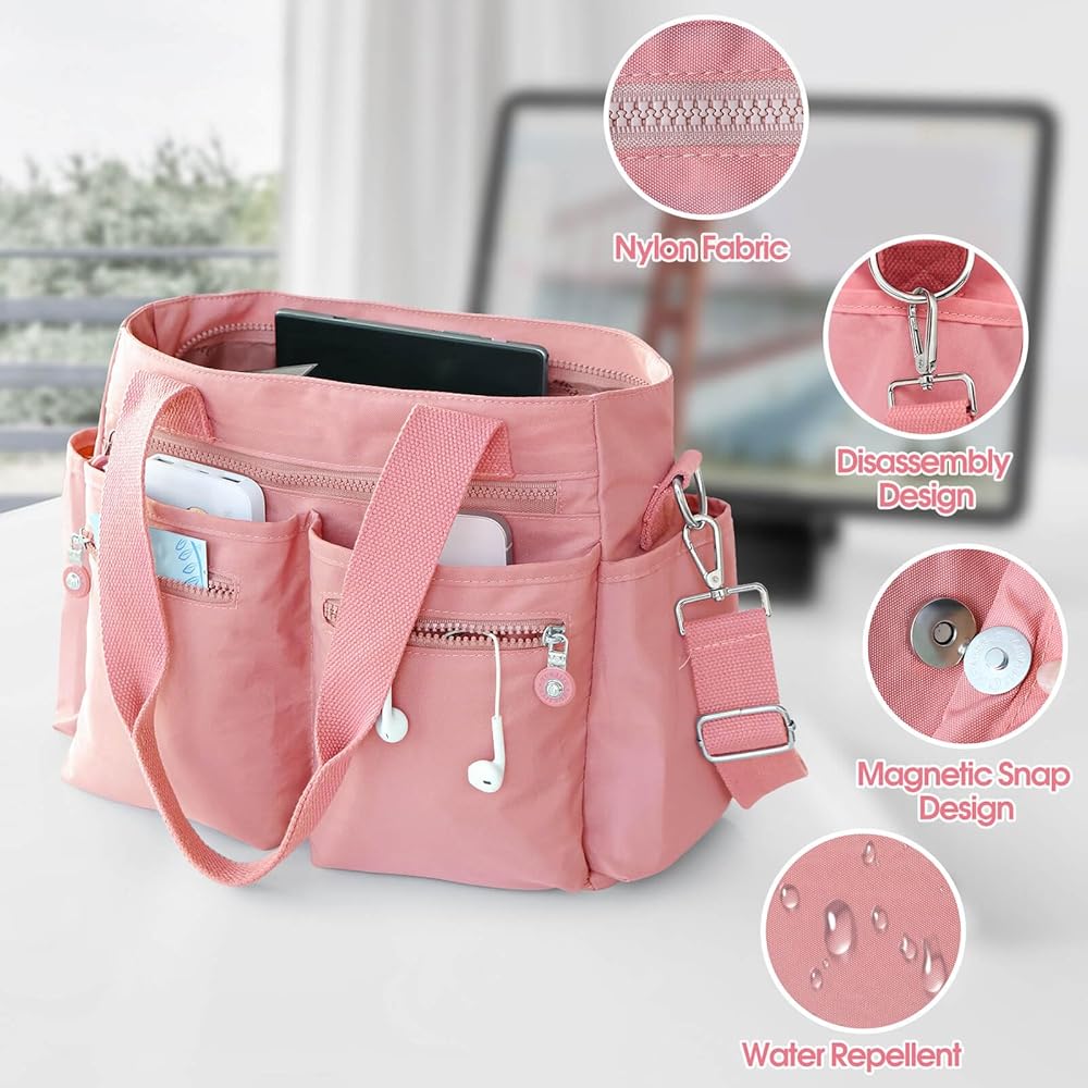 🖤 [ Wide Application ] The multi pocket tote bag not only has a large capacity, but can also organize and protect your frequently used items, such as tablets, mobile phones, notebooks, small umbrellas, water bottles, power banks, notebooks, cosmetics, etc. Whether as a daily match or a travel essential, this handbag can meet your various needs.