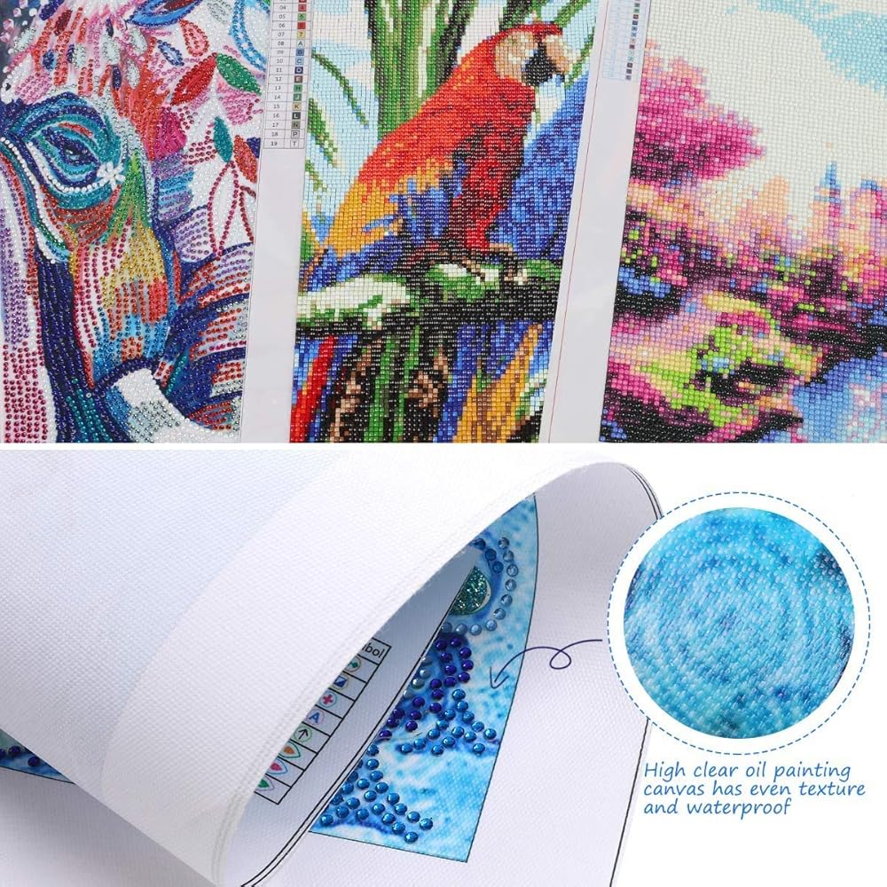 The HD and waterproof canvas processed by 5D technology has clearer outlines and texture so that marked number can be easily found, promoting you quickly and accurately embed diamonds of the corresponding color on the canvas