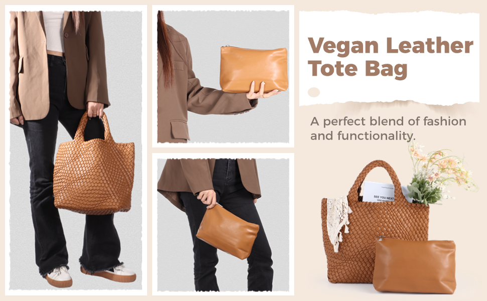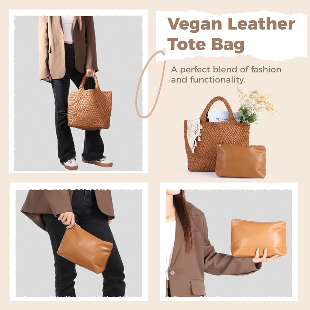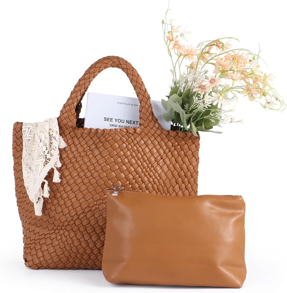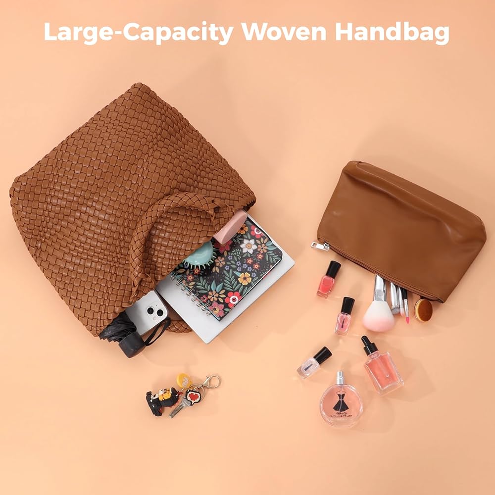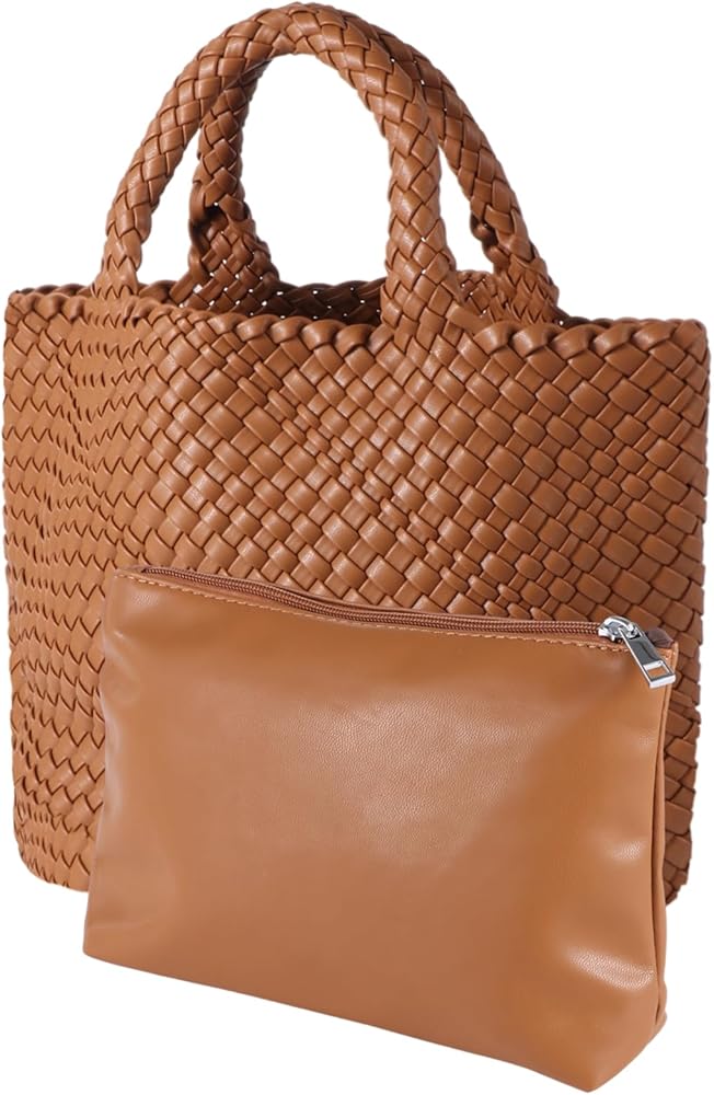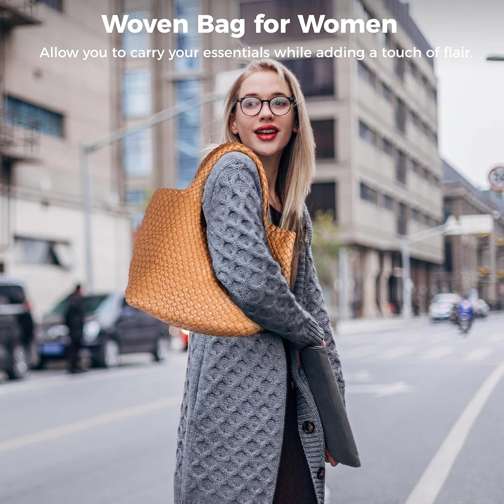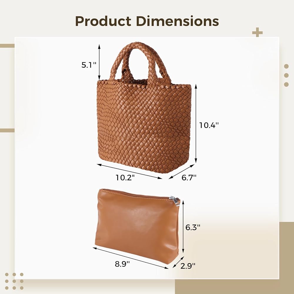 【جزء داخلي واسع】بقياس 10.2 × 6.7 × 10.4 بوصة، حقيبتنا المنسوجة من الجلد واسعة بشكل لا يصدق. مثالي لاستيعاب جهاز لوحي بحجم 9.7 بوصة، وكتب، ومظلة، ومستحضرات تجميل، والمزيد. حافظ على أساسياتك اليومية منظمة جيدًا أينما ذهبت.