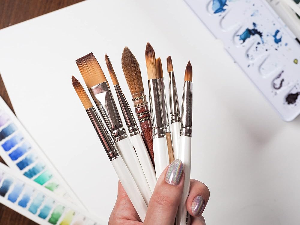 Memory point brush with flat tip is perfect for water color, gouache, acrylic, glass and silk painting