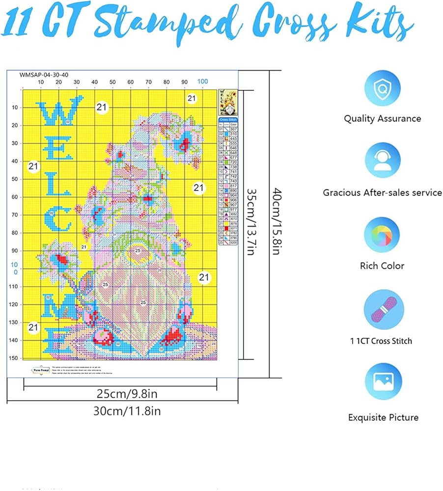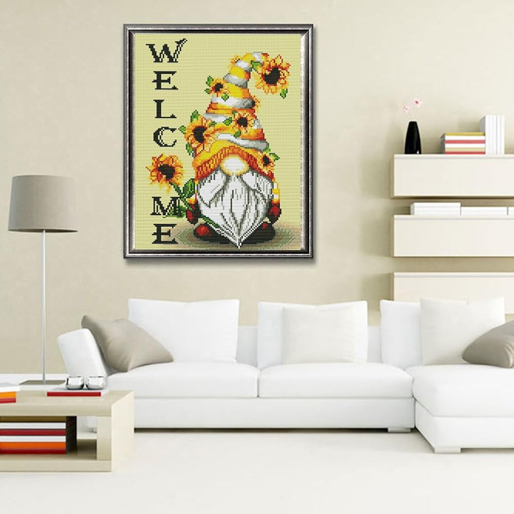 مجموعات غرز متقاطعة مختومة من KARMOGSO للبالغين المبتدئين، طقم غرز متقاطعة ترحيب جنوم، مجموعة كاملة من مجموعات التطريز المختومة للفنون والحرف اليدوية والتطريز لديكور المنزل، 30.48 سم × 40.64 سم