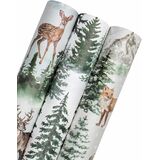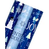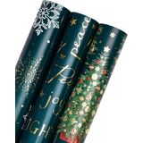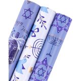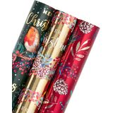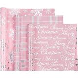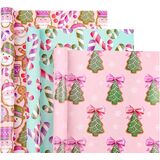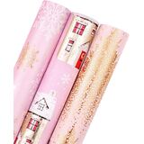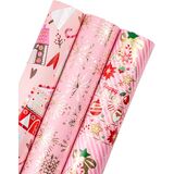 لفافة ورق تغليف عيد الميلاد من راباهوليك - لفافة صغيرة - 3 لفات - 17 بوصة × 120 بوصة لكل لفة - الرنة الوردية والأرجوانية الباستيل، قصب الحلوى مع الفرح، مجموعة عطلة ندفة الثلج