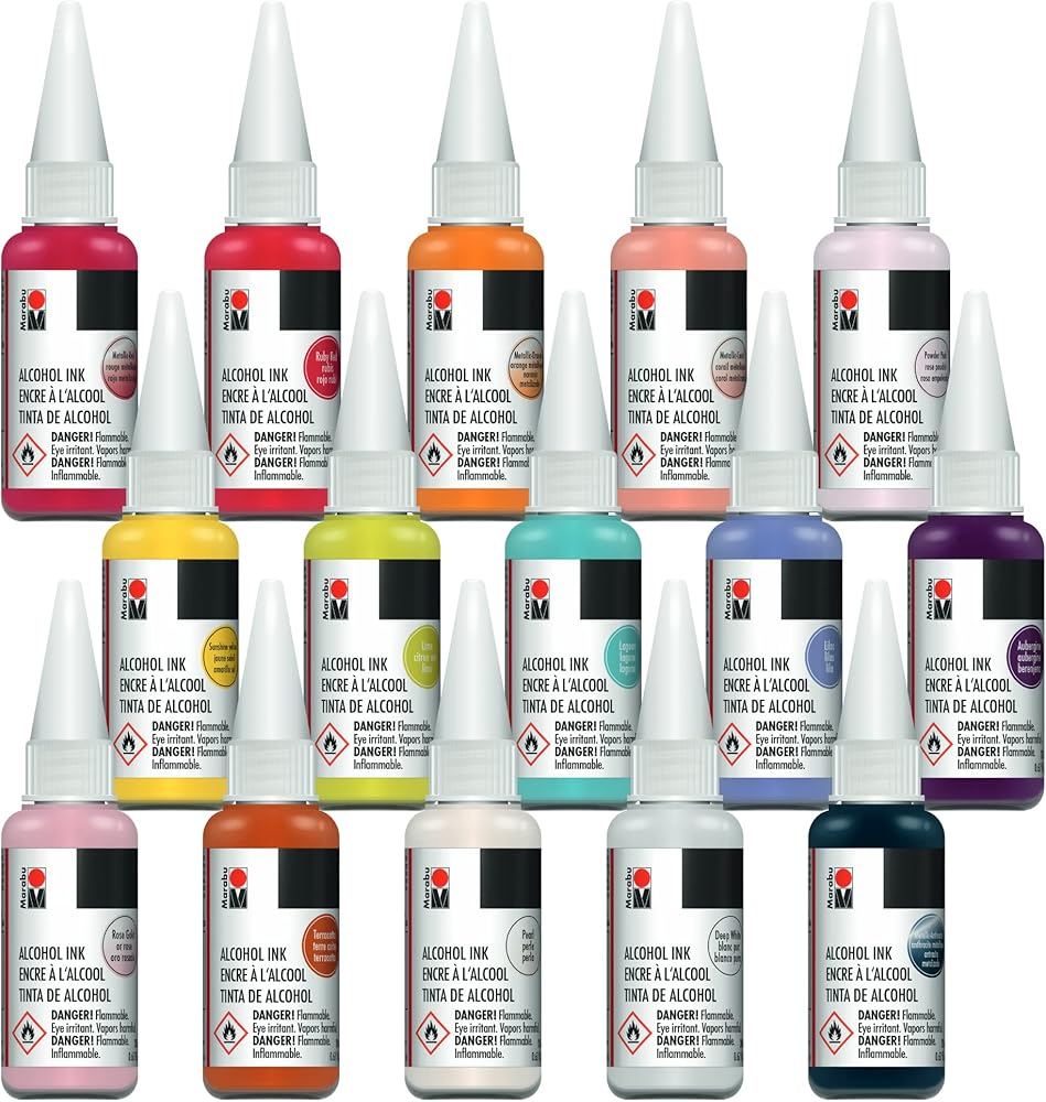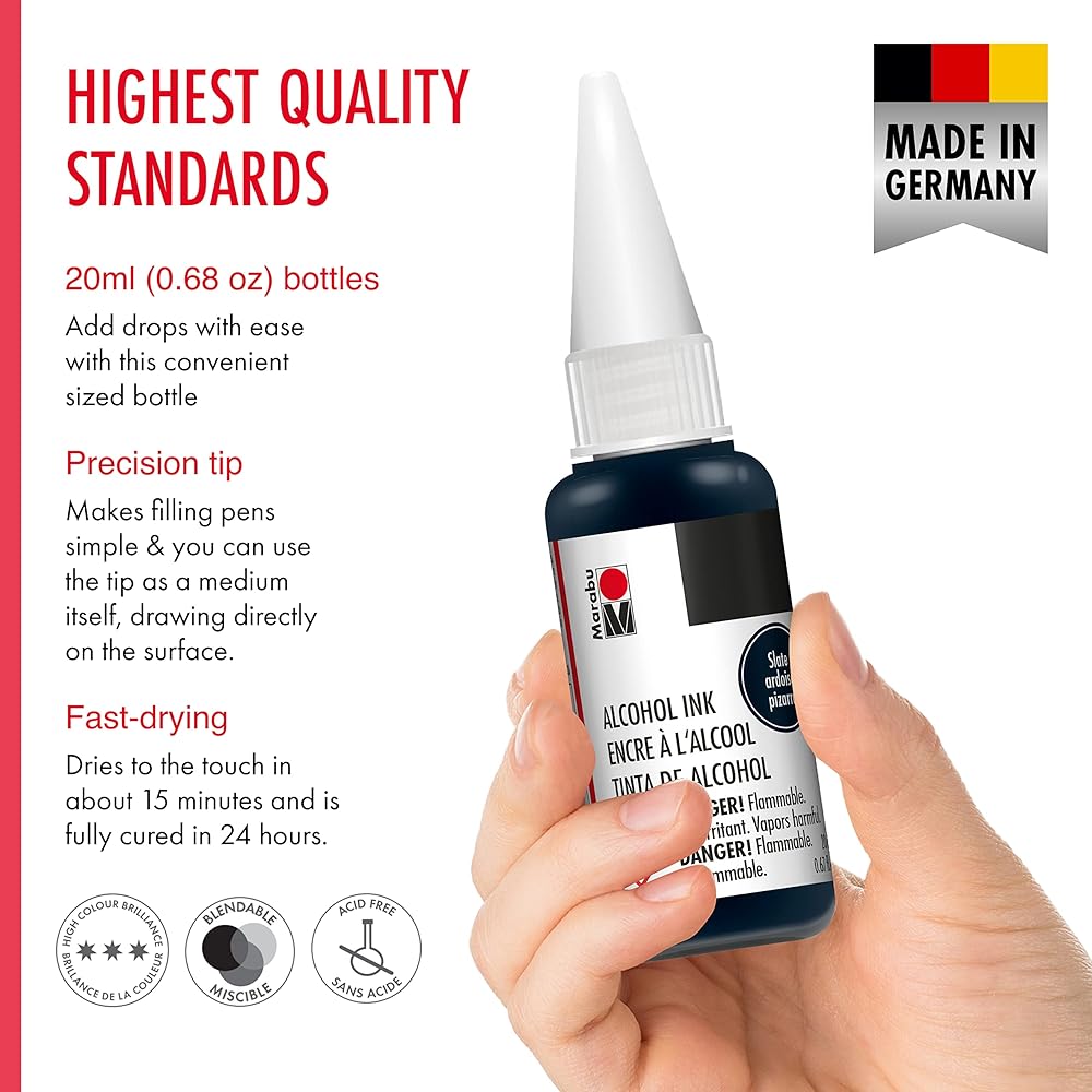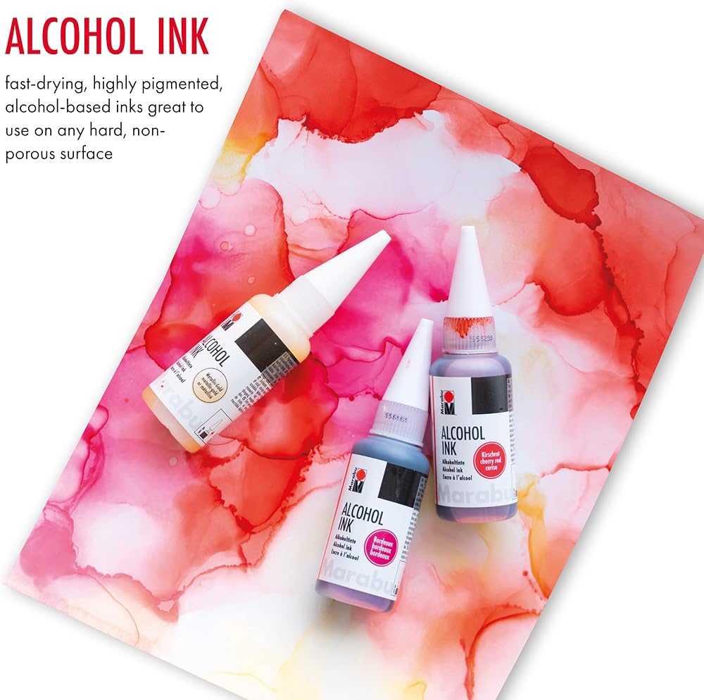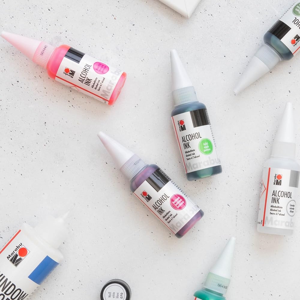 إمكانيات إبداعية لا حصر لها - أحبار كحول مارابو سريعة الجفاف ودائمة وخالية من الأحماض. استخدم حبر الكحول الخاص بنا لحبر الراتنج، والإيبوكسي، وورق حبر الكحول، والسيراميك، والمعادن، والبلاستيك المنكمش، والفينيل، والجلود، والزجاج، والأكواب والمزيد.