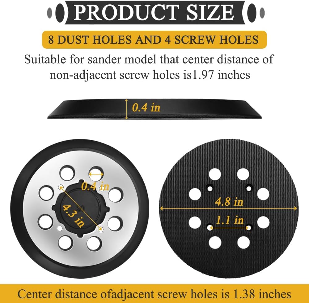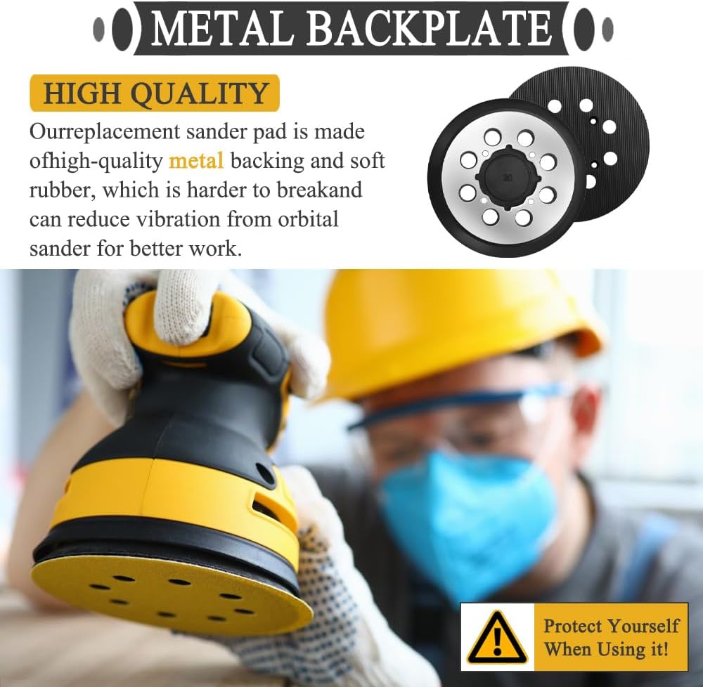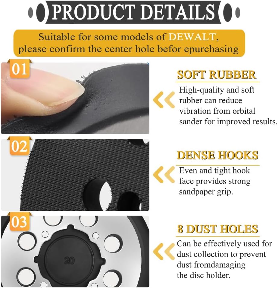 【HIGH QUALITY】Our replacement sander pad is made of high-quality metal backing and soft rubber, which is harder to break and can reduce vibration from orbital sander for better work.