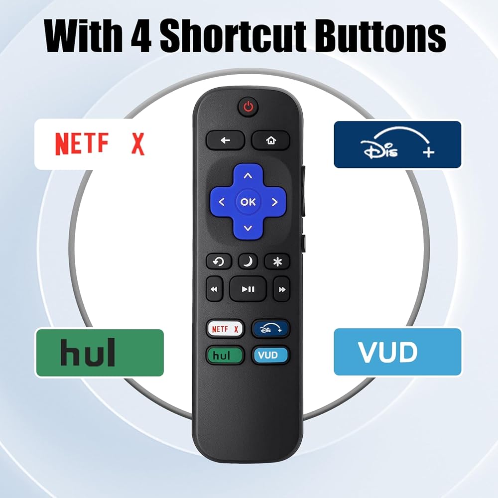 【COMPATIBILITY】This remote compatible for Hisense Roku TV, for TCL Roku TV, for Sharp Roku TV, for Onn Roku TV, for RCA Roku TV, for Westinghouse Roku TV, for Eement Roku TV, for Jvc Roku TV, for Sanyo Roku TV ALL Models. ❌Not for Roku Streaming Media Players, Not for Roku Express, Express +, Not for Roku Streaming Stick, Stick+, Not for Roku Premiere, Premiere+, Not for Roku Ultra, Roku Box 1, 2, 3, 4