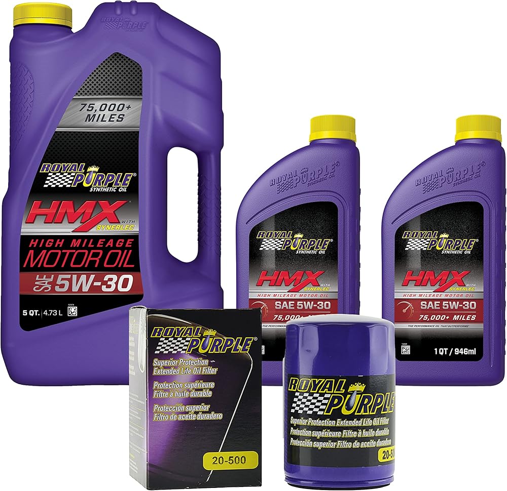 KIT INCLUDES: This bundle comes with 7 quarts of Royal Purple HMX 5W-30 synthetic high mileage motor oil and a Royal Purple 20-500 extended life oil filter