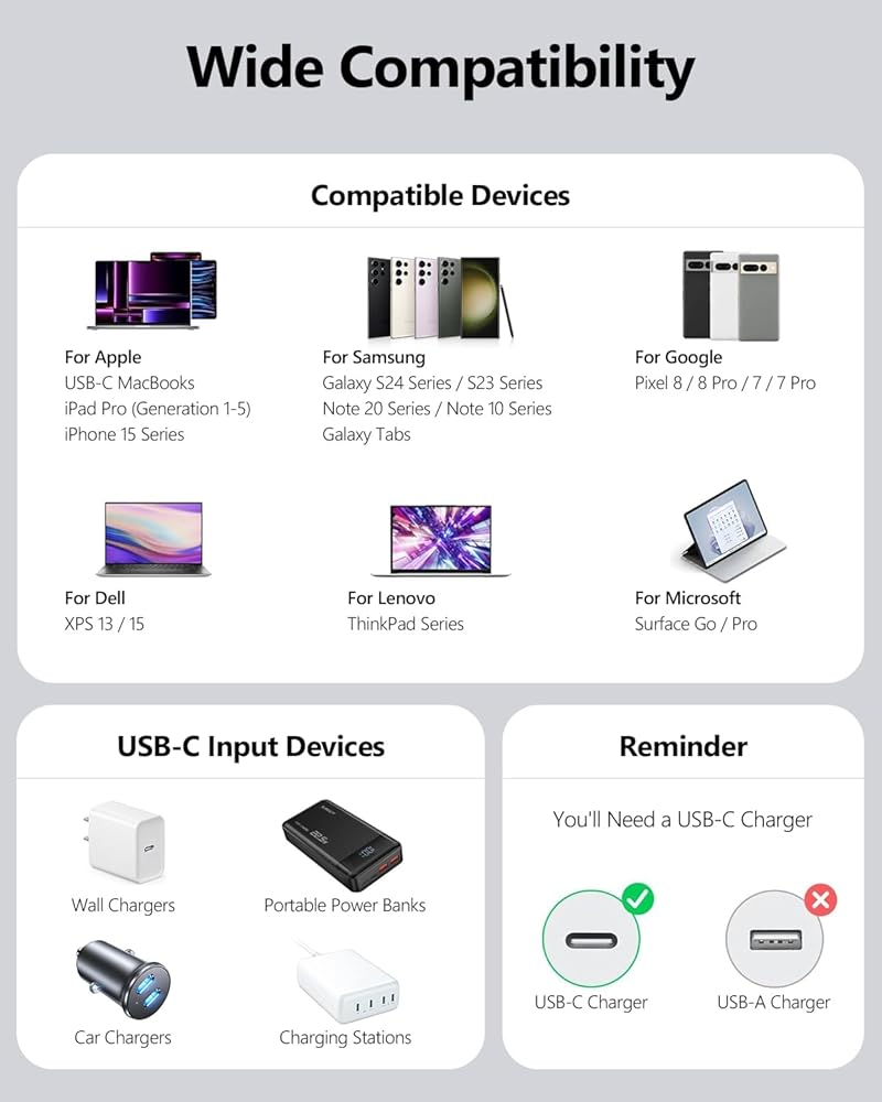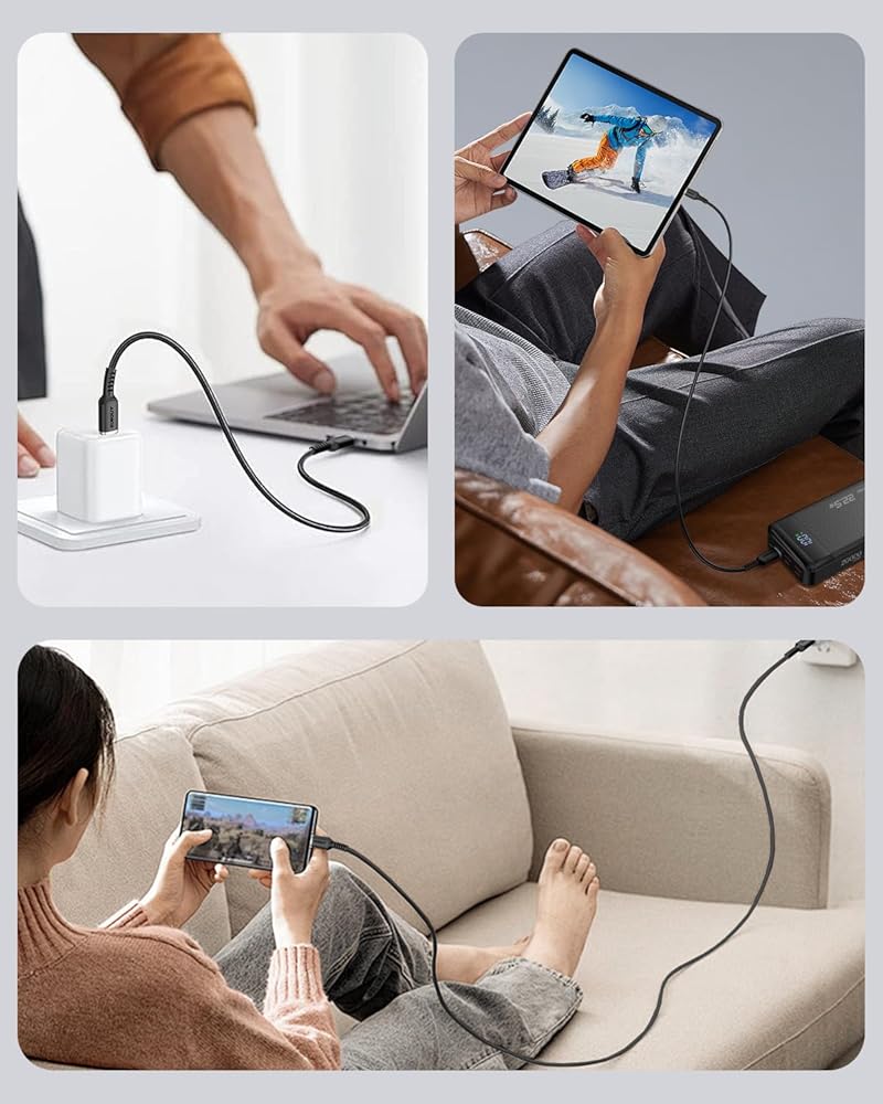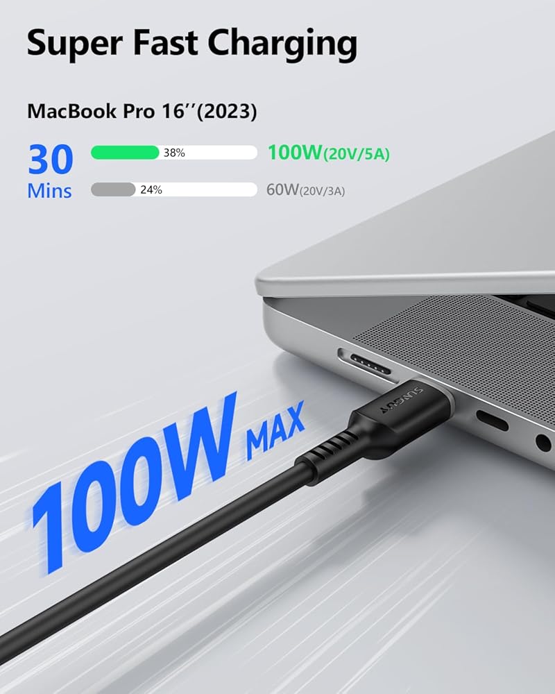 • ✅[شحن سريع 100 واط] يدعم كابل usb-c إلى usb-c سرعة شحن تصل إلى 100 واط (20 فولت 5 أمبير)، مما يعمل على تشغيل الأجهزة بسرعة، قل وداعًا لأوقات الانتظار الطويلة لشحن جهازك.