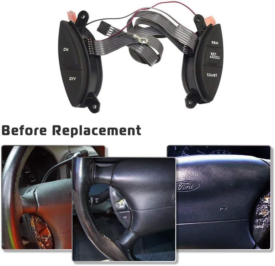 مفتاح التحكم في سرعة عجلة القيادة لسيارة Ford 1998-2003 Ranger، 2001-2005 Explorer Sport Trac، F150، Mercury Mountaineer، Mazda B3000 مجموعة أزرار مفتاح الخطوبة تحل محل # SW-5928، F87Z-9C888-BB
