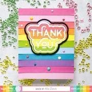 These builder dies (designed by cardmaker JJ Bolton) can be used in many ways, including using the stripes to create full or partial backgrounds and using them for perfectly cut sentiment strips.