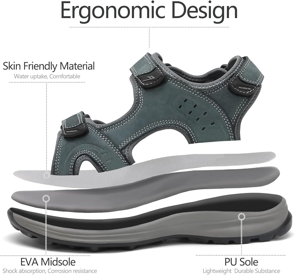 • الجزء العلوي من الجلد: صنادل FLARUT الجلدية مصنوعة من مواد مسامية ومدمجة مع تصميم علمي، مما يجعل الصنادل أكثر ملاءمة لشكل القدم وتوفر راحة أعلى