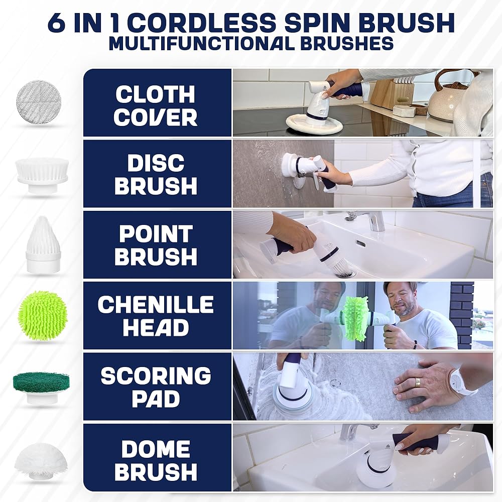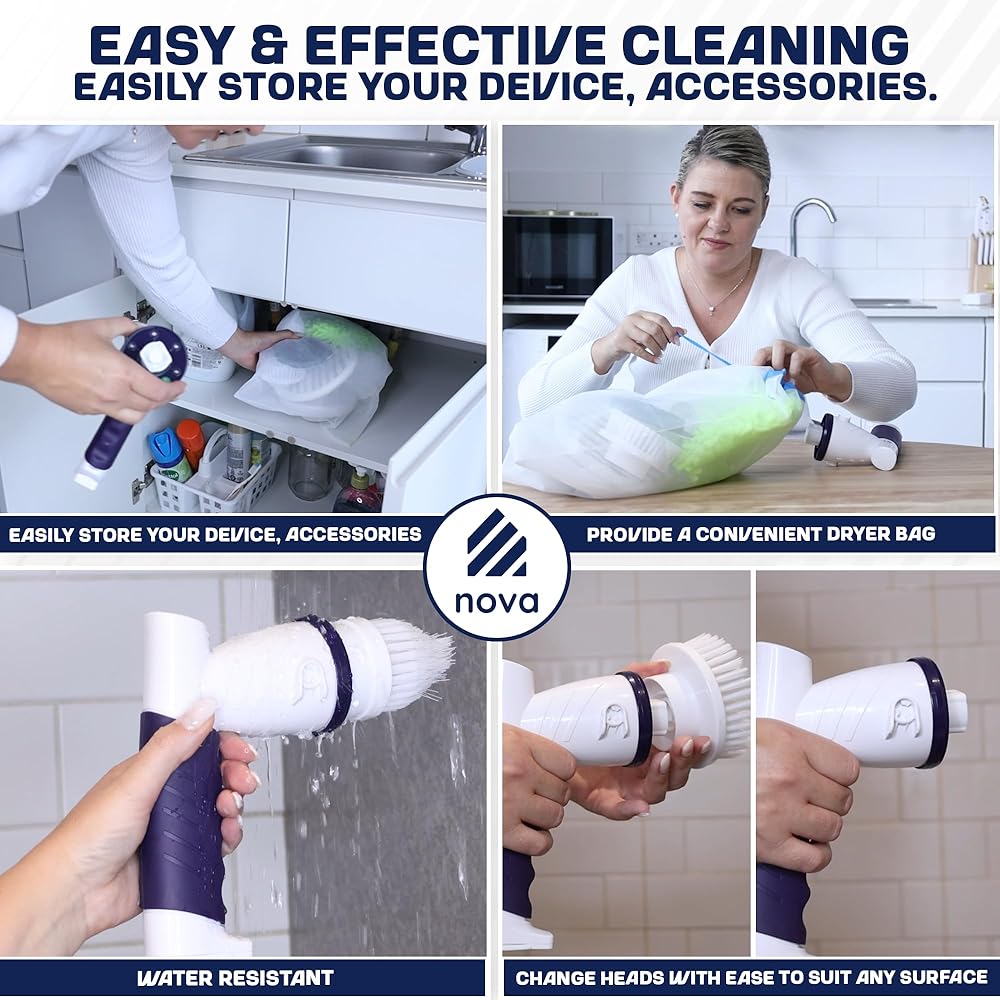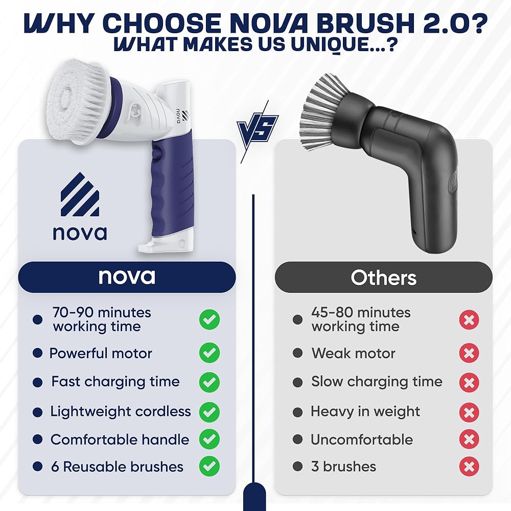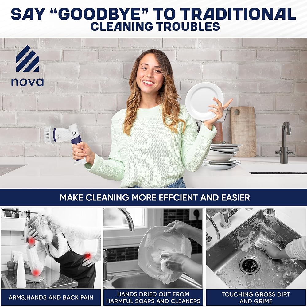 فرشاة تنظيف دوارة كهربائية من نوفا 2.0، فرشاة دوارة للحمام قابلة لإعادة الشحن لاسلكية محمولة لتنظيف الحوض/البلاط/الأرضية/الحوض/النافذة | محرك أقوى وبطارية أطول مع 6 رؤوس فرشاة تنظيف قابلة للاستبدال