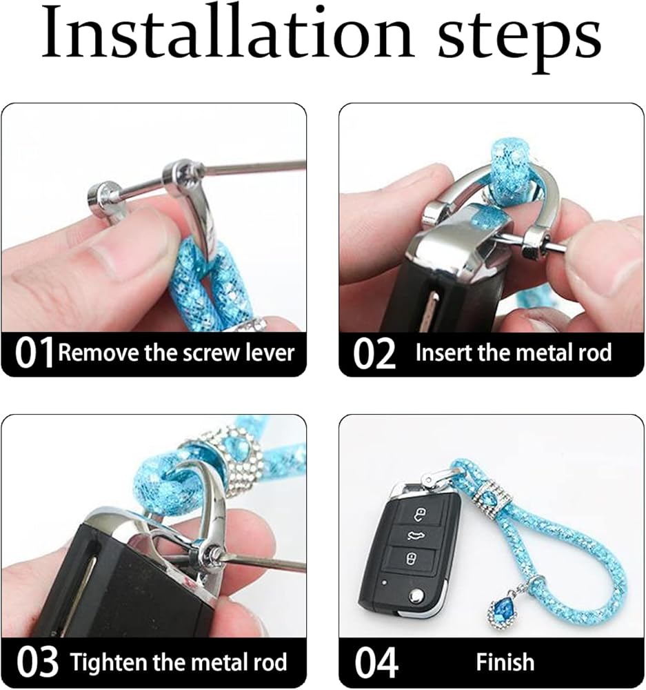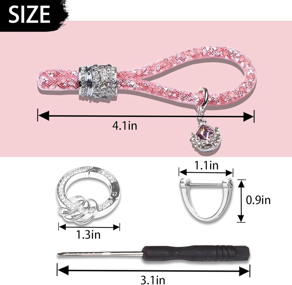 【Multifunction】: Composed of a D-ring and a round ring keychain with diamonds, it has a loss-proof design that allows you to easily find your keys. Multiple ring designs help you organize your keys, you can add other keys in addition to your car keys. The keychain is easy to operate and can be easily opened with one hand. We'll give you a screwdriver on each keychain to help you open the D-ring.