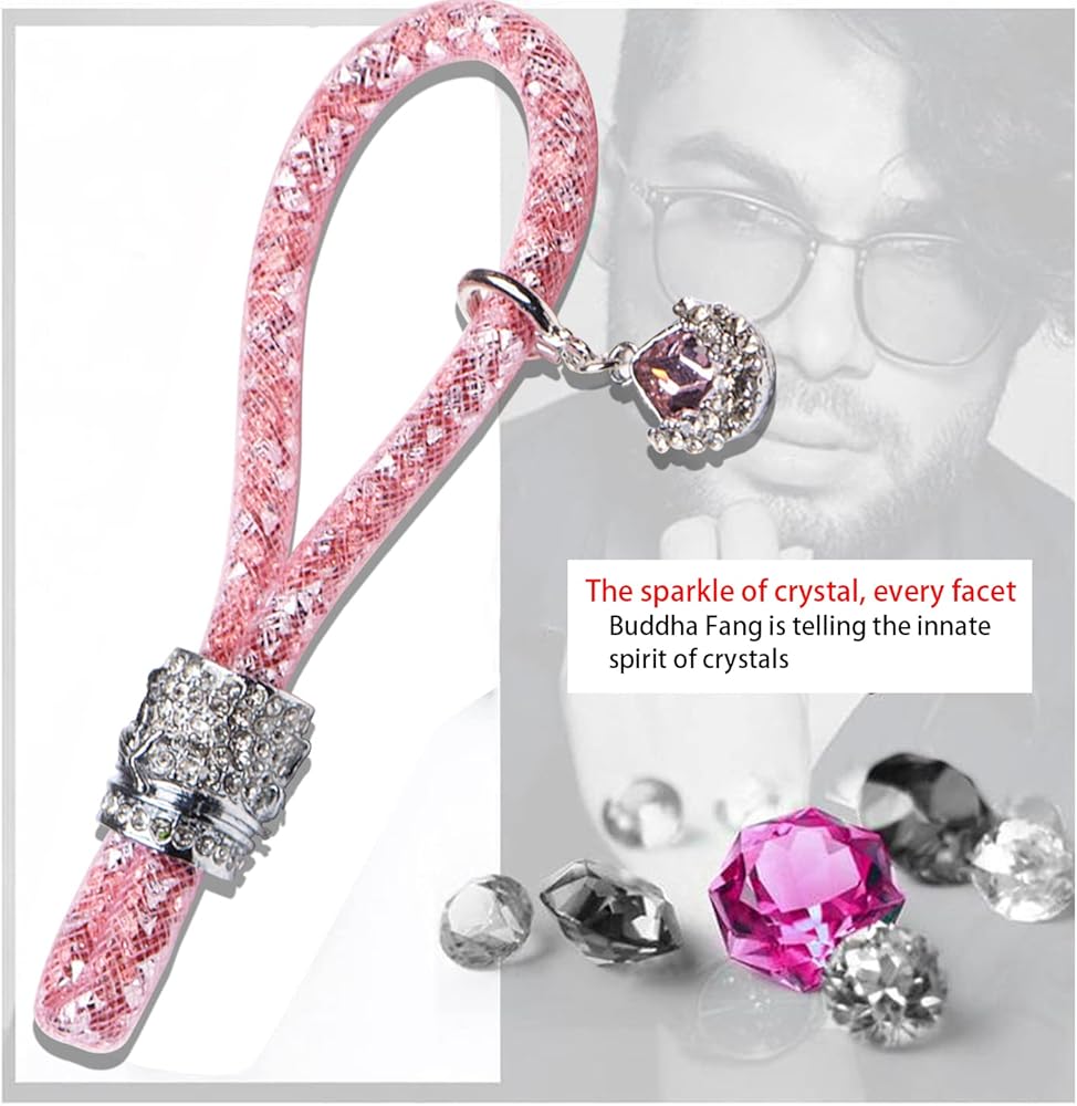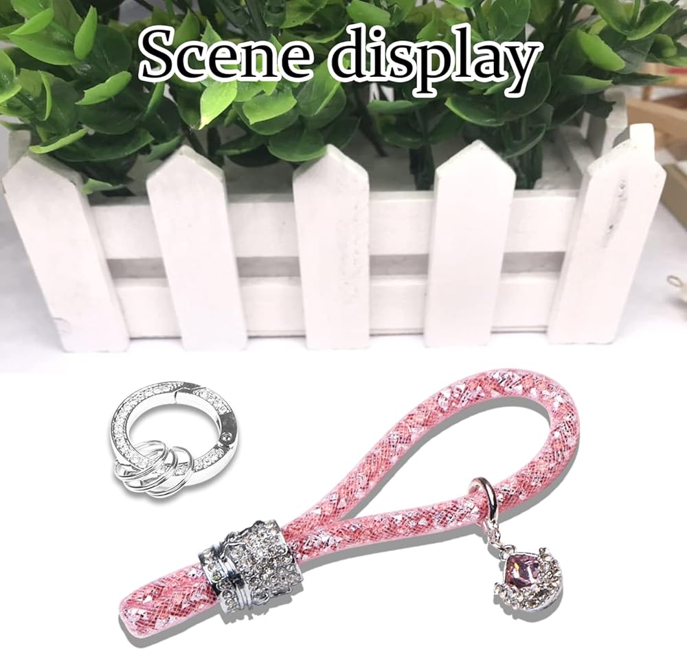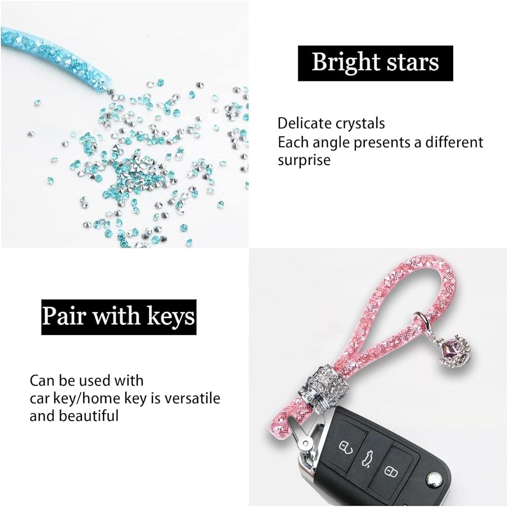 【Premium Material】: Our car keychains are made of high-quality mesh rope and metal fittings, the alloy surface is set with golden crystals, and the diamonds inside the mesh rope are sparkling. It always glows in the sun. It is stylish and beautiful, the metal part will not fade easily, and it can be used for a long time.