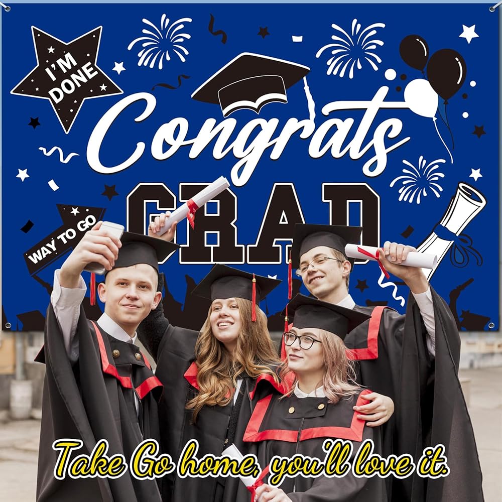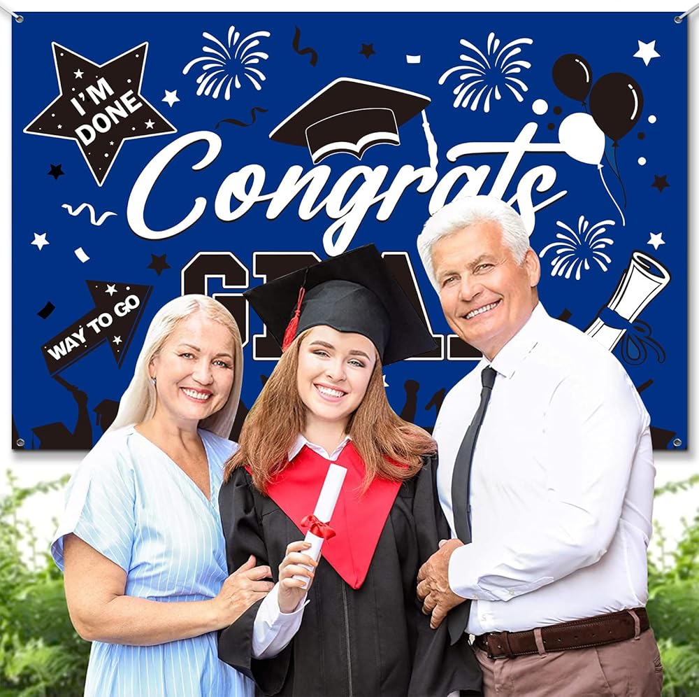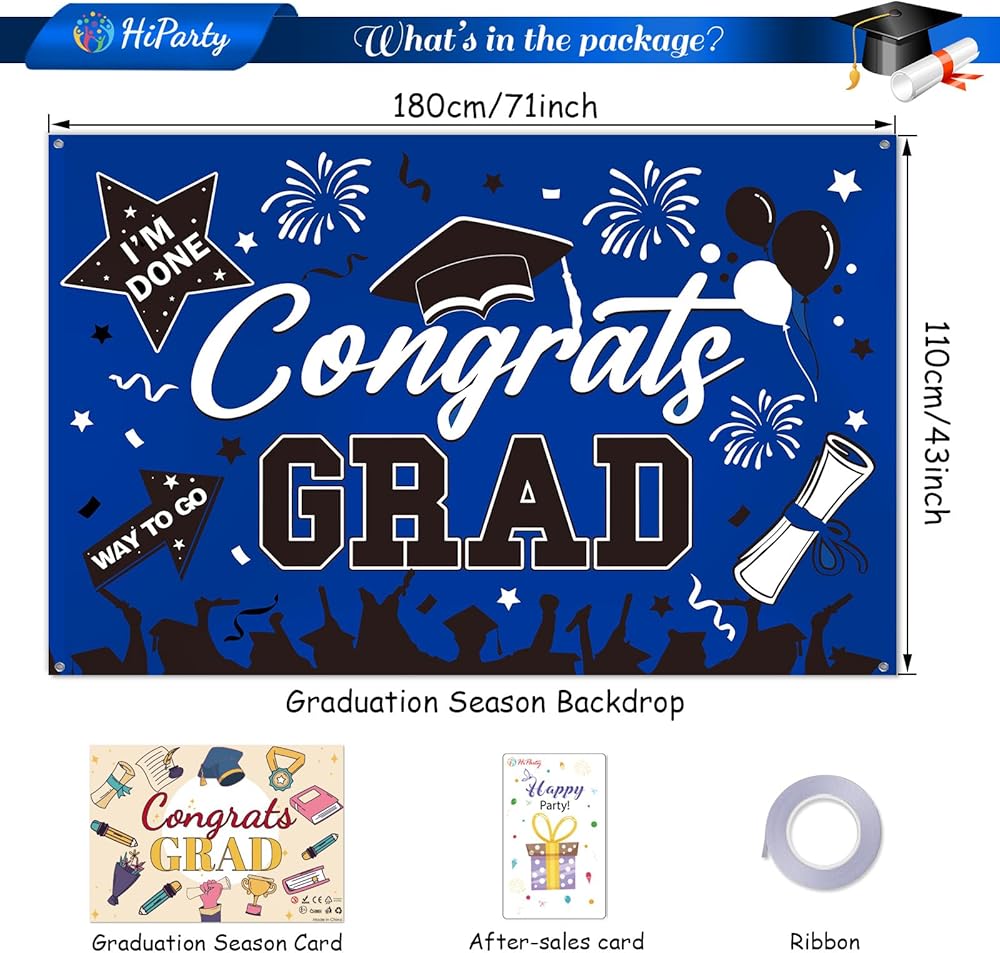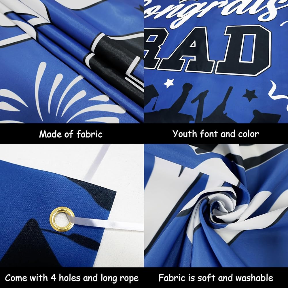 • 👏عالية الجودة وقابلة لإعادة الاستخدام👏 لافتة التخرج هذه مصنوعة من البوليستر الفاخر، وهو سهل التنظيف ومقاوم للتمزق ولا يبهت بسهولة. بعد التخزين الدقيق، يمكن إعادة استخدام خلفية التخرج بسهولة في حفلة التخرج. ستضيف خلفية التهنئة المتخرجة ذكريات لا تُنسى إلى حفل التخرج الخاص بك 2024 بينما توفر لك أيضًا المزيد من الراحة. أفضل دعائم صور التخرج لفئة زينة التخرج لعام 2024.