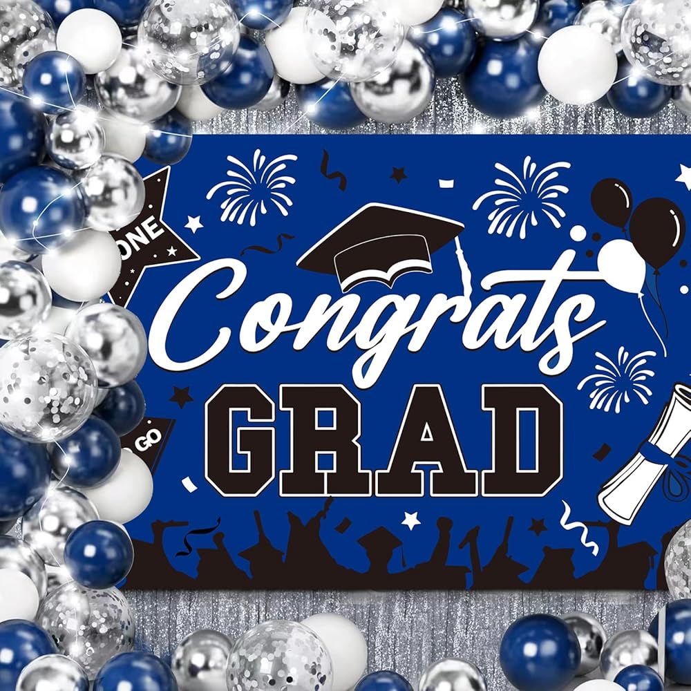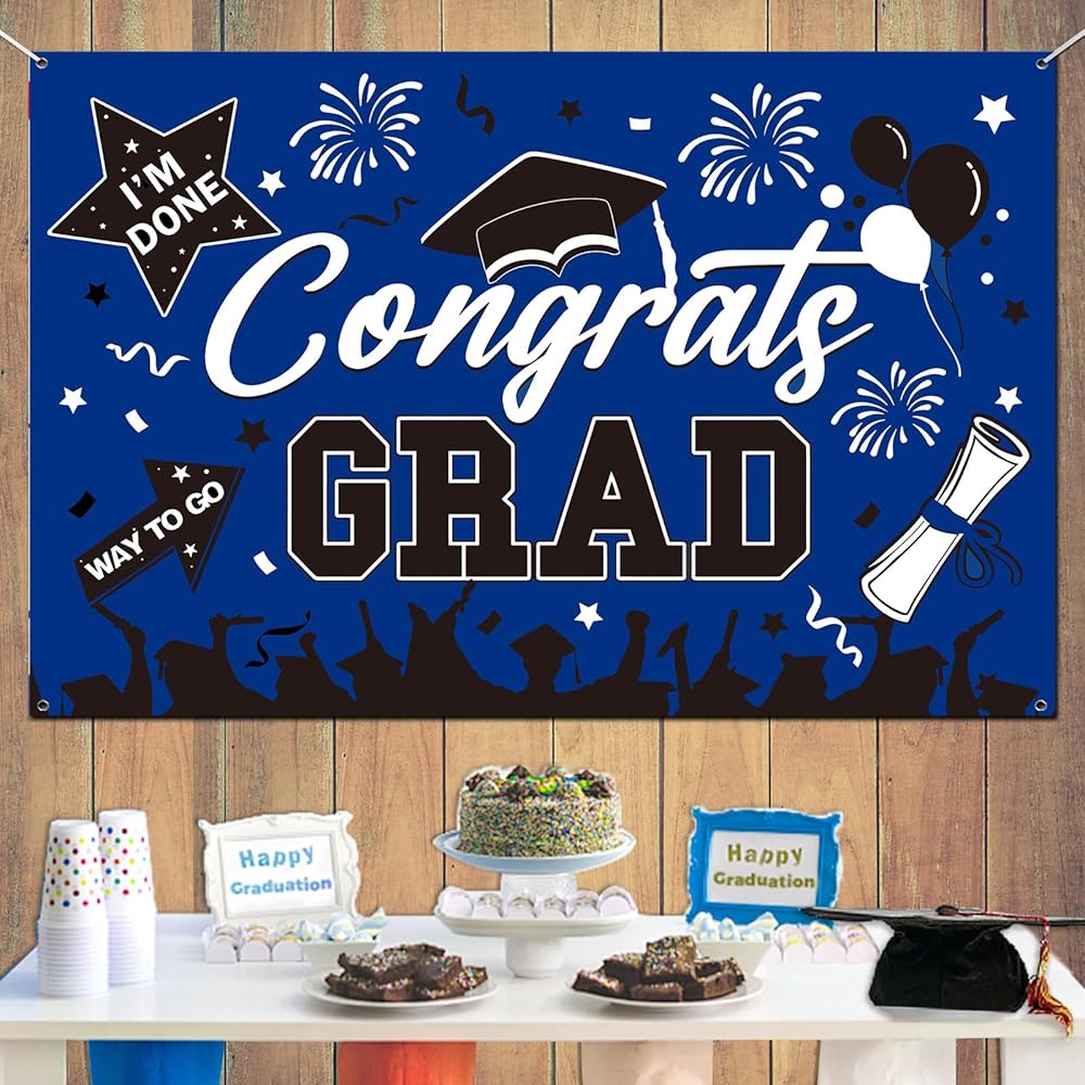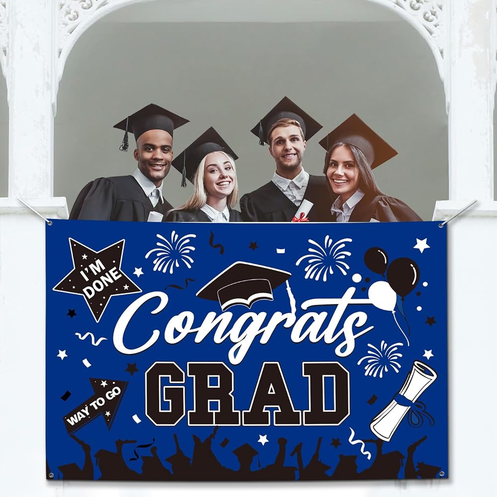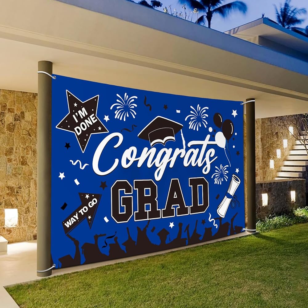 • 👏عالية الجودة وقابلة لإعادة الاستخدام👏 لافتة التخرج هذه مصنوعة من البوليستر الفاخر، وهو سهل التنظيف ومقاوم للتمزق ولا يبهت بسهولة. بعد التخزين الدقيق، يمكن إعادة استخدام خلفية التخرج بسهولة في حفلة التخرج. ستضيف خلفية التهنئة المتخرجة ذكريات لا تُنسى إلى حفل التخرج الخاص بك 2024 بينما توفر لك أيضًا المزيد من الراحة. أفضل دعائم صور التخرج لفئة زينة التخرج لعام 2024.