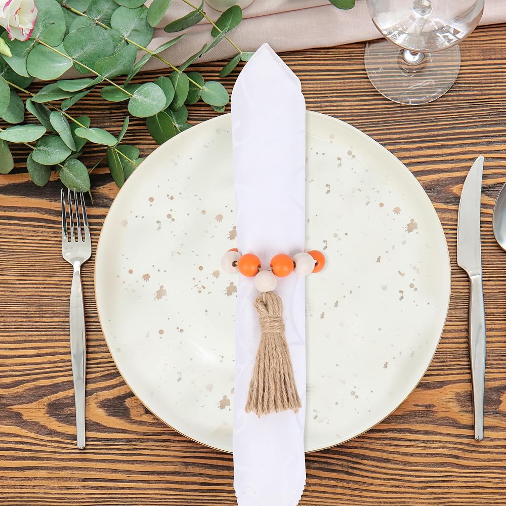 • المواد: حلقات مناديل المزرعة مصنوعة من خرز خشبي وحبل من الجوت. متصل بحبال مرنة سميكة، حامل المناديل المطرز هذا سهل التمدد. حلقات مناديل خشبية مثالية لمعظم ديكورات الطاولة.