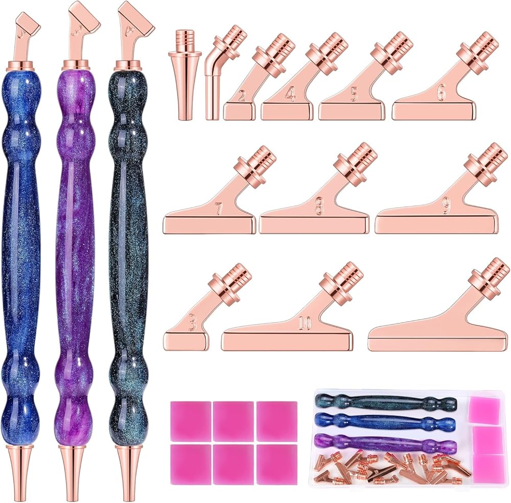 • 【Diamond Art Painting Pen Kit, Contains All Your Needs】21 Pieces diamond art painting tool set, easily meet your DIY needs. Including 3 pcs exquisite resin diamond art painting pens, 12 pcs 45°stainless steel metal thread tips, 6 glue clays and 1 exquisite storage box. Different tip models can drill different numbers of diamonds, convenient and quick, with these tools, your DIY diamond art painting process will become very easy.