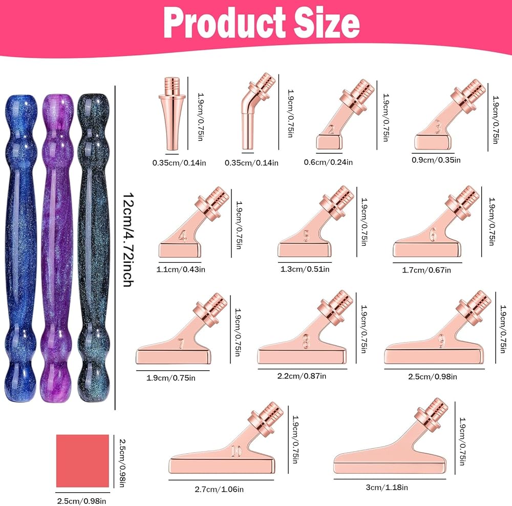 【Diamond Art Painting Pen Kit, Contains All Your Needs】21 Pieces diamond art painting tool set, easily meet your DIY needs. Including 3 pcs exquisite resin diamond art painting pens, 12 pcs 45°stainless steel metal thread tips, 6 glue clays and 1 exquisite storage box. Different tip models can drill different numbers of diamonds, convenient and quick, with these tools, your DIY diamond art painting process will become very easy.