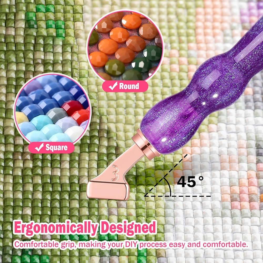• 【New Upgraded 45° Comfortable Ergonomic Design】 Our diamond art pen adopts ergonomic design, unique thickened curved pen body makes it easier to use than other ordinary diamond art pen, and the bend of the pen allows you to see exactly where you need to place it, lightweight and just the right length, fits your hand perfectly, convenient and easy to hold, not easy to fatigue, suitable for hours of comfortable diamond art painting, making your DIY process easy.