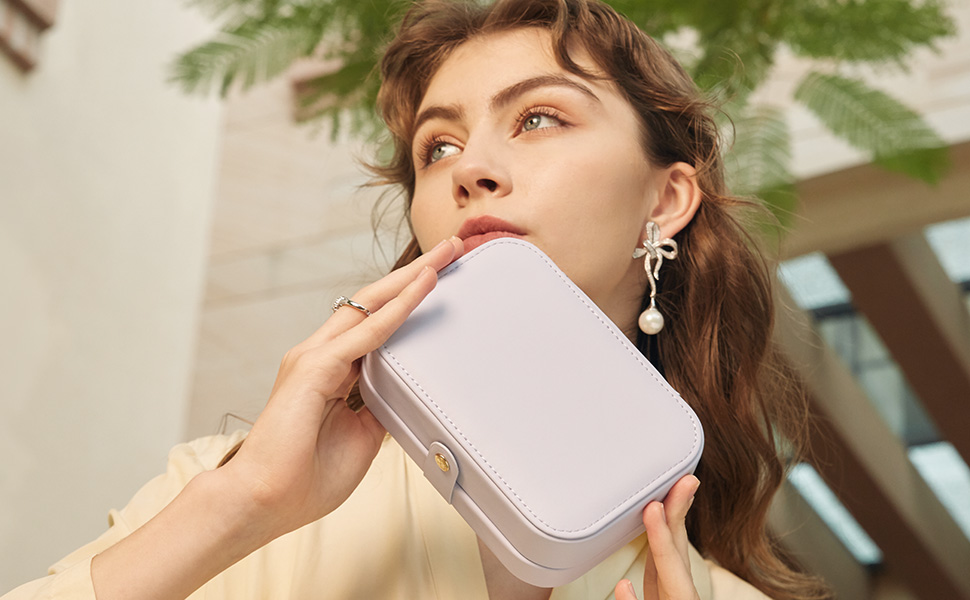 - [جودة فاخرة] منظم المجوهرات مصنوع من جلد البولي يوريثان، وهو جيد ضد الماء. والمواد الداخلية مخملية ناعمة لحماية مجوهراتك من الصدمات.