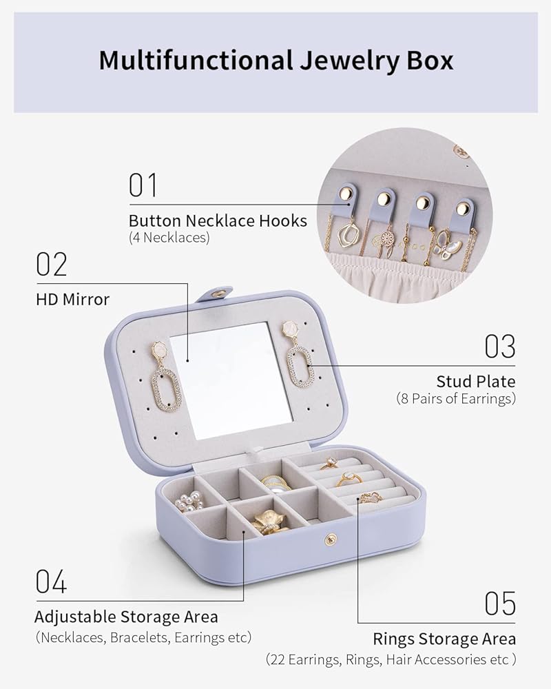 - [صندوق مجوهرات متعدد الوظائف] مساحة تخزين مجوهرات من طبقتين للأقراط والقلائد والخواتم.