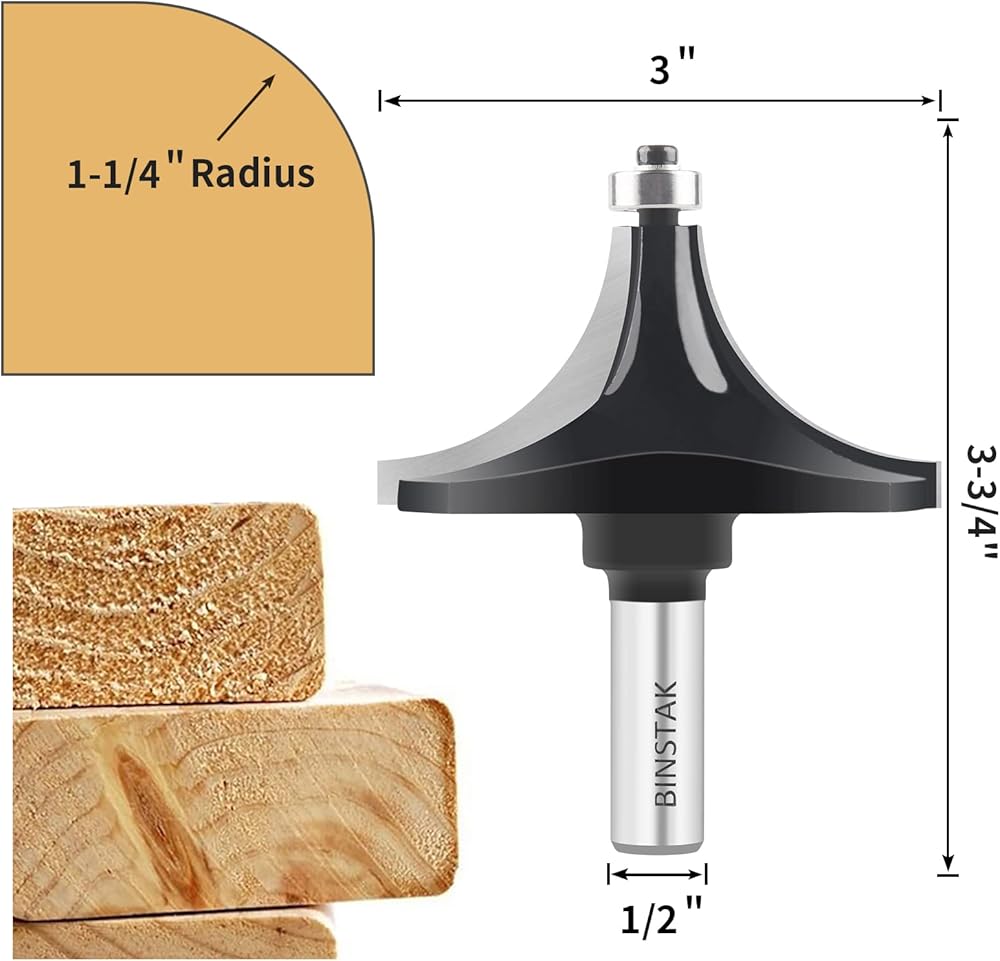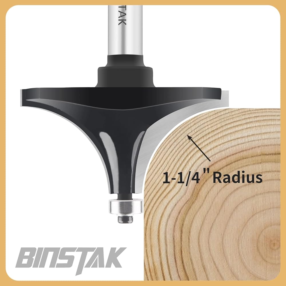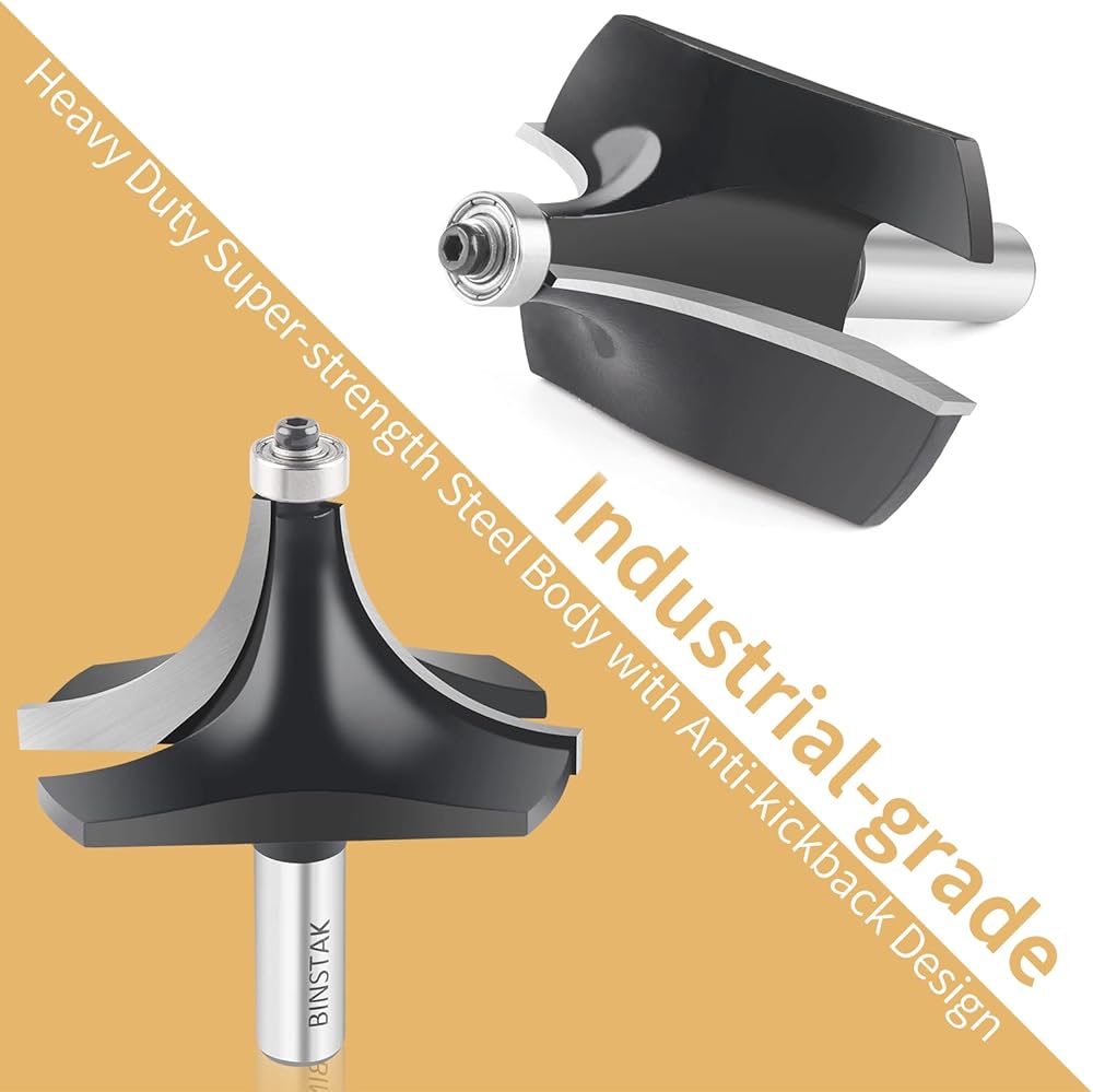 لقمة مستديرة ذات جودة صناعية فوق الخرز: ممتازة لإنتاج حواف ناعمة ومستديرة بشكل موحد. رائعة للاستخدام في الحواف والخرز و/أو القوالب. ويمكن استخدامه بدون المحمل كقطعة مستقيمة قياسية، وهو رائع للقطع الغاطس وتوجيه النمط/القالب.