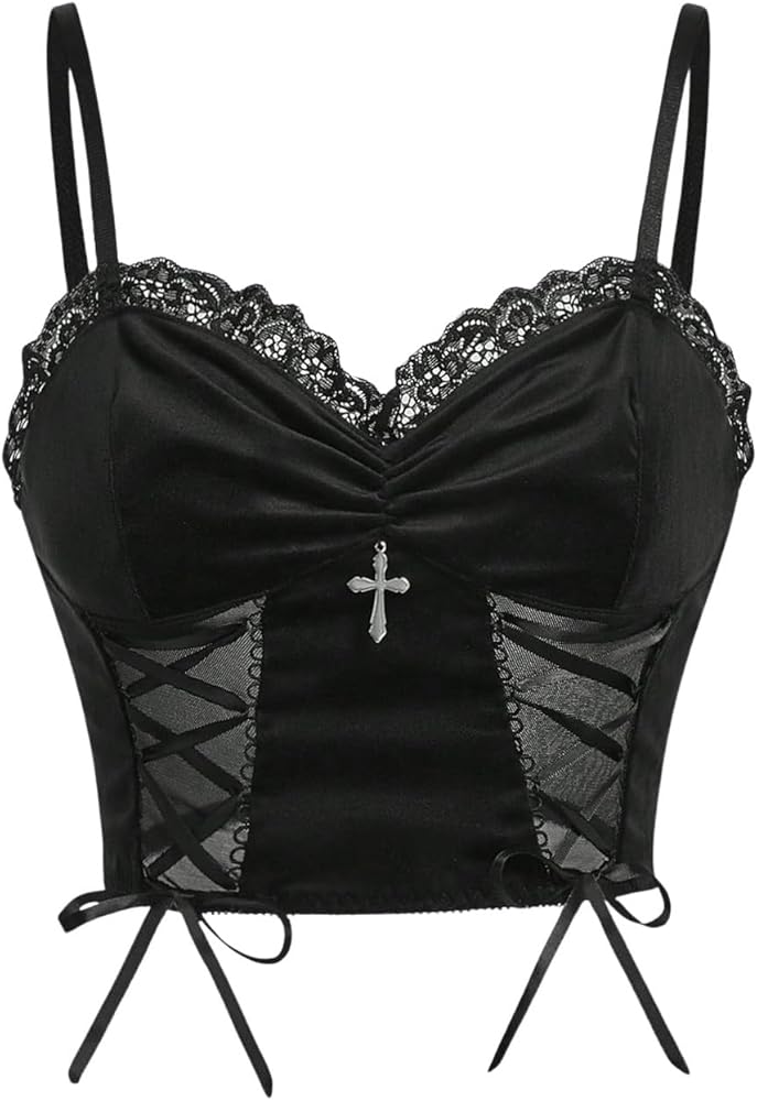 قمصان SHENHE النسائية على شكل فراشة وجمجمة ودانتيل متباين وحزام سباغيتي بدون أكمام بدون أكمام in Kuwait