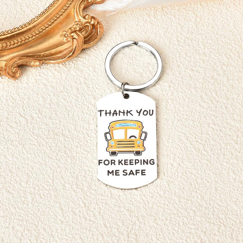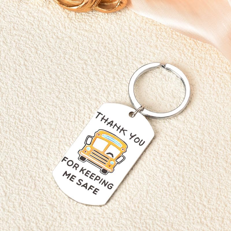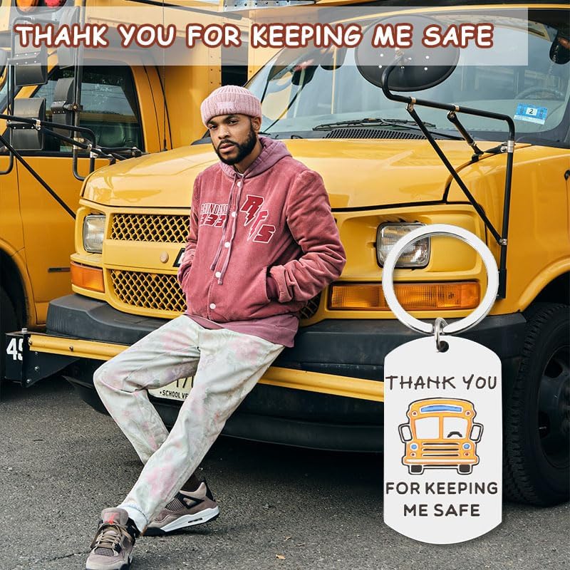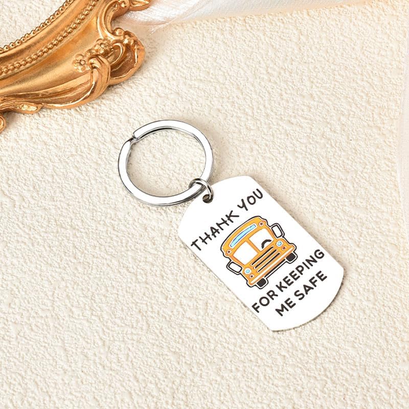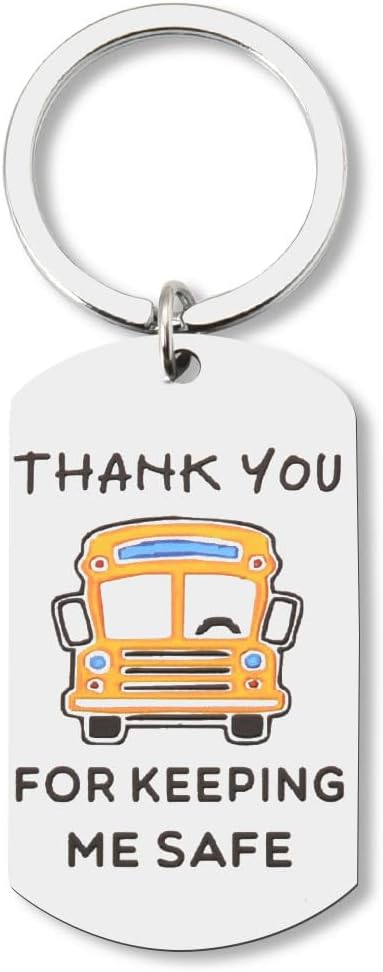 "Thank you for keeping me safer" is engraved on the keychains for bus drivers, perfect school bus gifts for drivers, appreciation gifts for him her, retired school bus driver gifts, thank you birthday christmas gifts for bus driver, a cherished keepsake for bus drivers