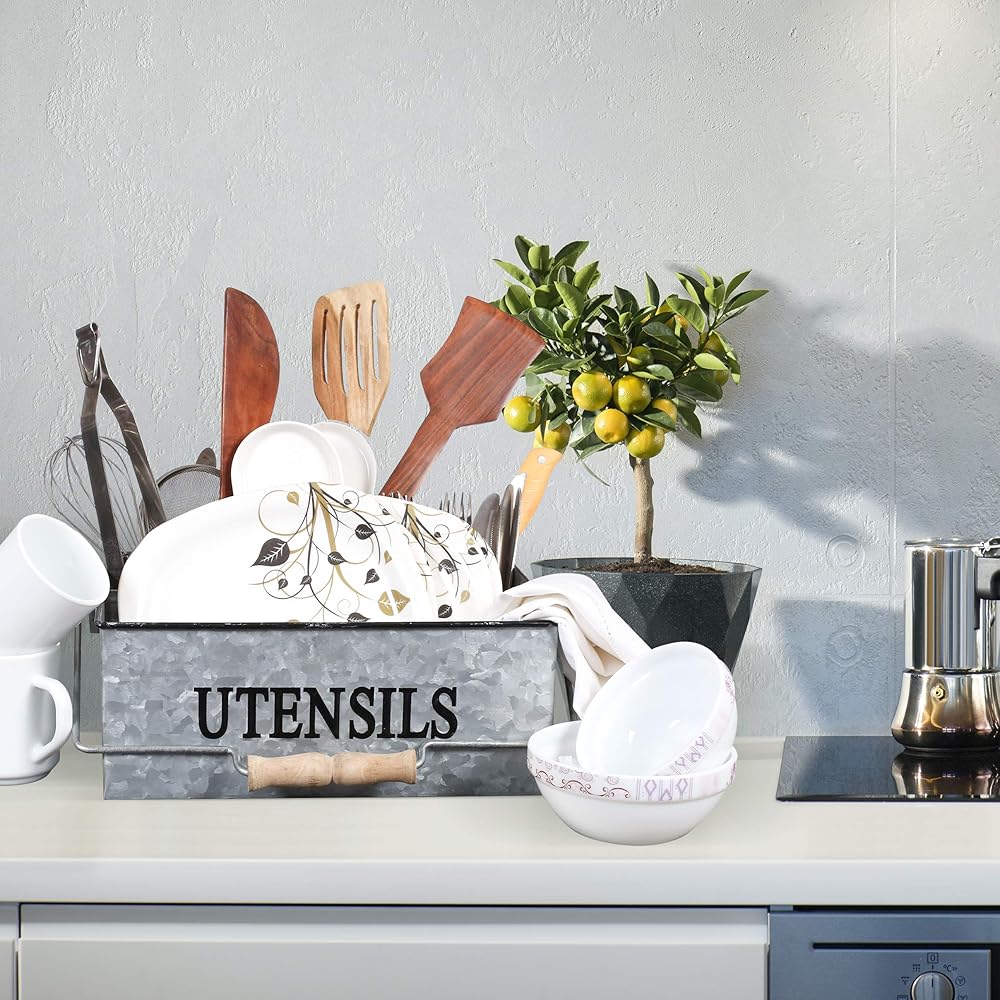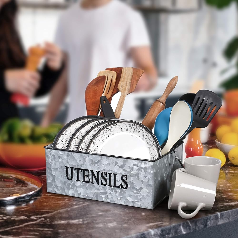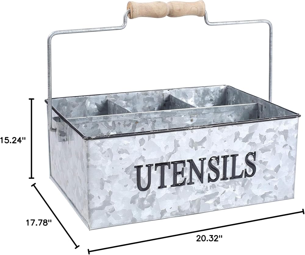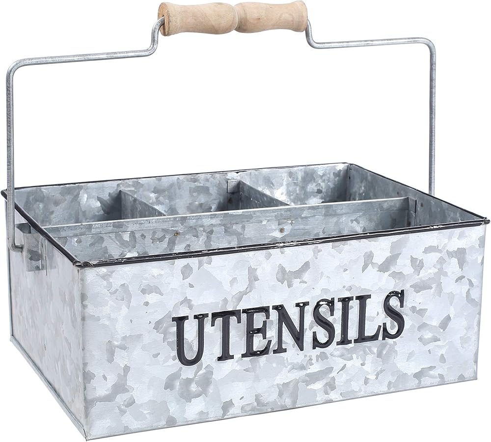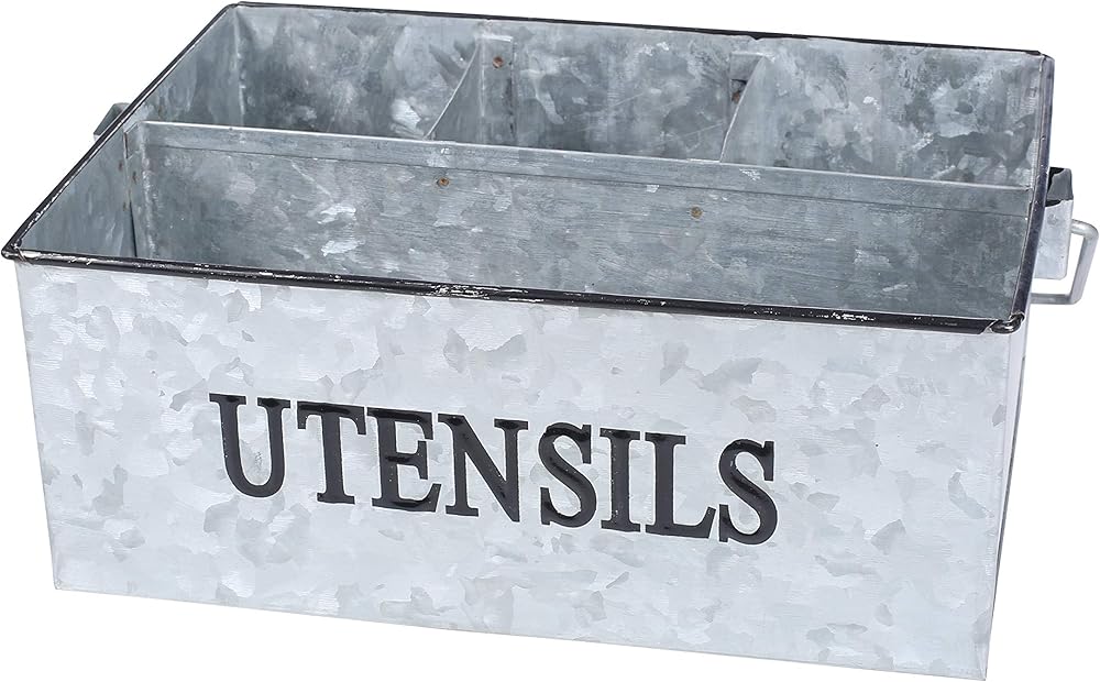 فكرة رائعة: استخدم هذه العلبة المعدنية اللامعة لحفلات حمام السباحة الصيفية والنزهات ووجبات الغداء وحفلات الزفاف وغيرها من المناسبات الممتعة. تحتوي علبة الأدوات المعدنية المجلفنة على ثلاث حجرات صغيرة وحجرة كبيرة. يعتبر حامل الأدوات المعدني هذا مثاليًا لتنظيم الأدوات والمناديل والتوابل وأدوات الحفلات الأخرى. قم بإقران منظم الأدوات هذا مع الديكورات المعدنية الأخرى والألوان المفضلة لديك للحصول على صورة مثالية بعد الظهر أو حفلة مسائية