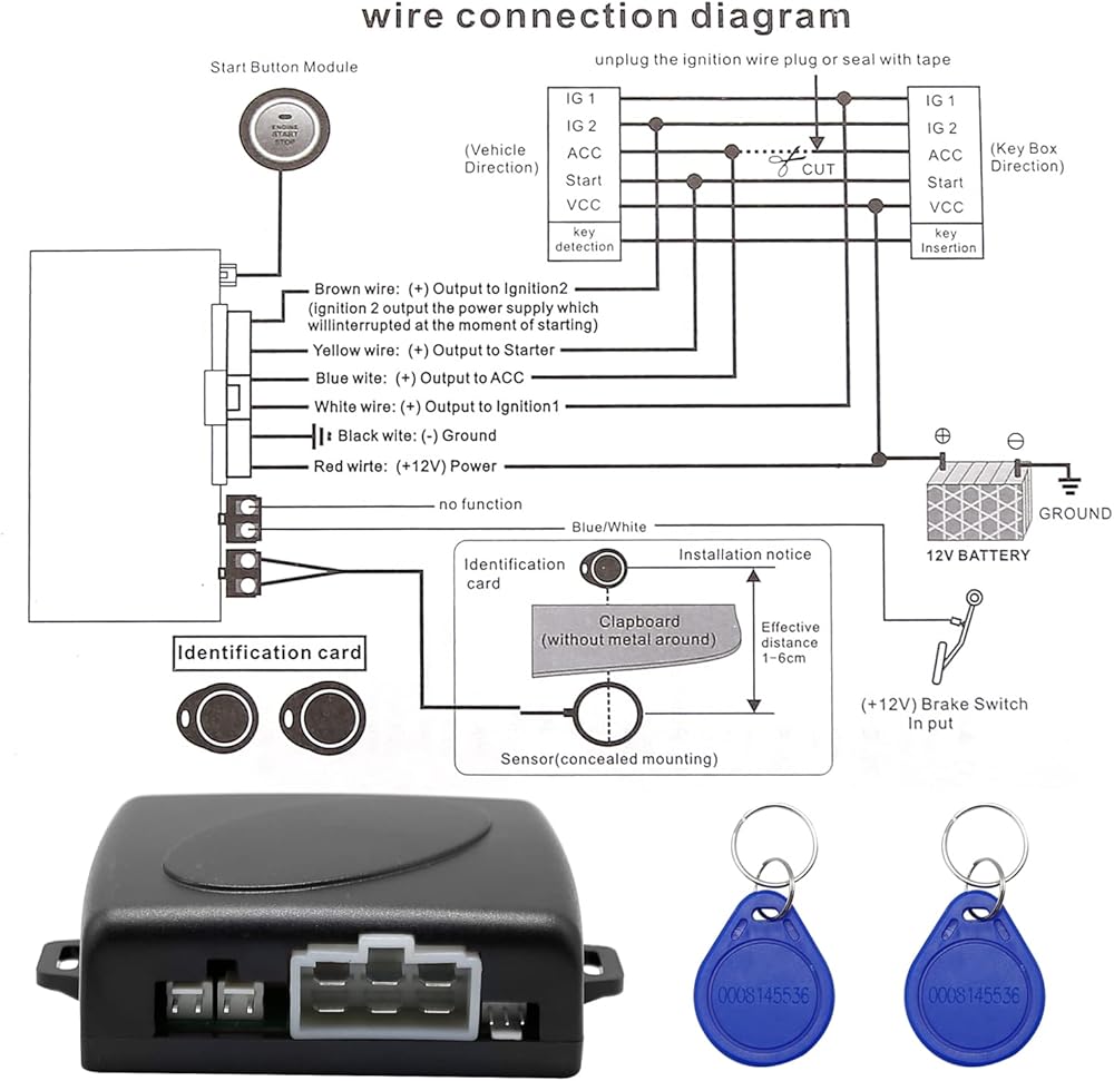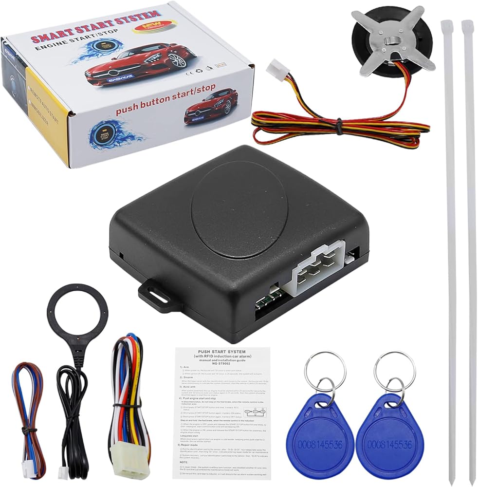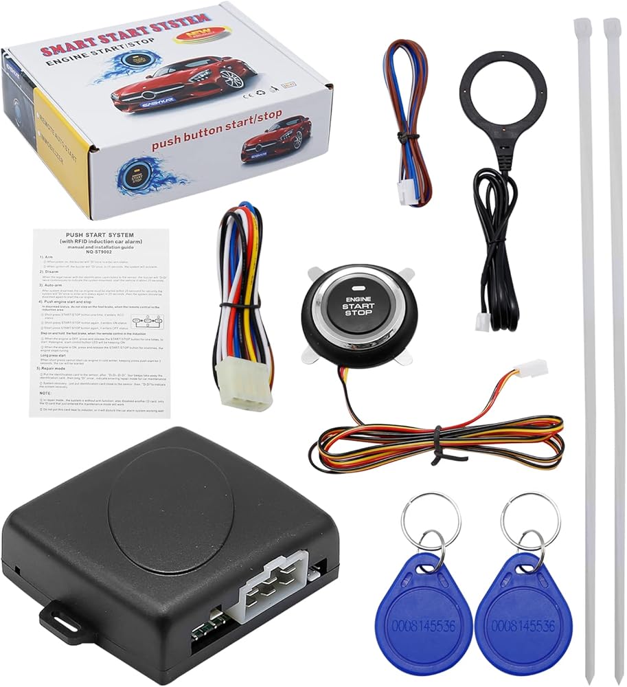 Package Included: 1 x Car Engine Push Starter Host, 1 x Push Start Stop Button, 1 x RFID Sensor Ring, 1 x Installation Wire, 1 x English User Manual, 2 x RFID Key