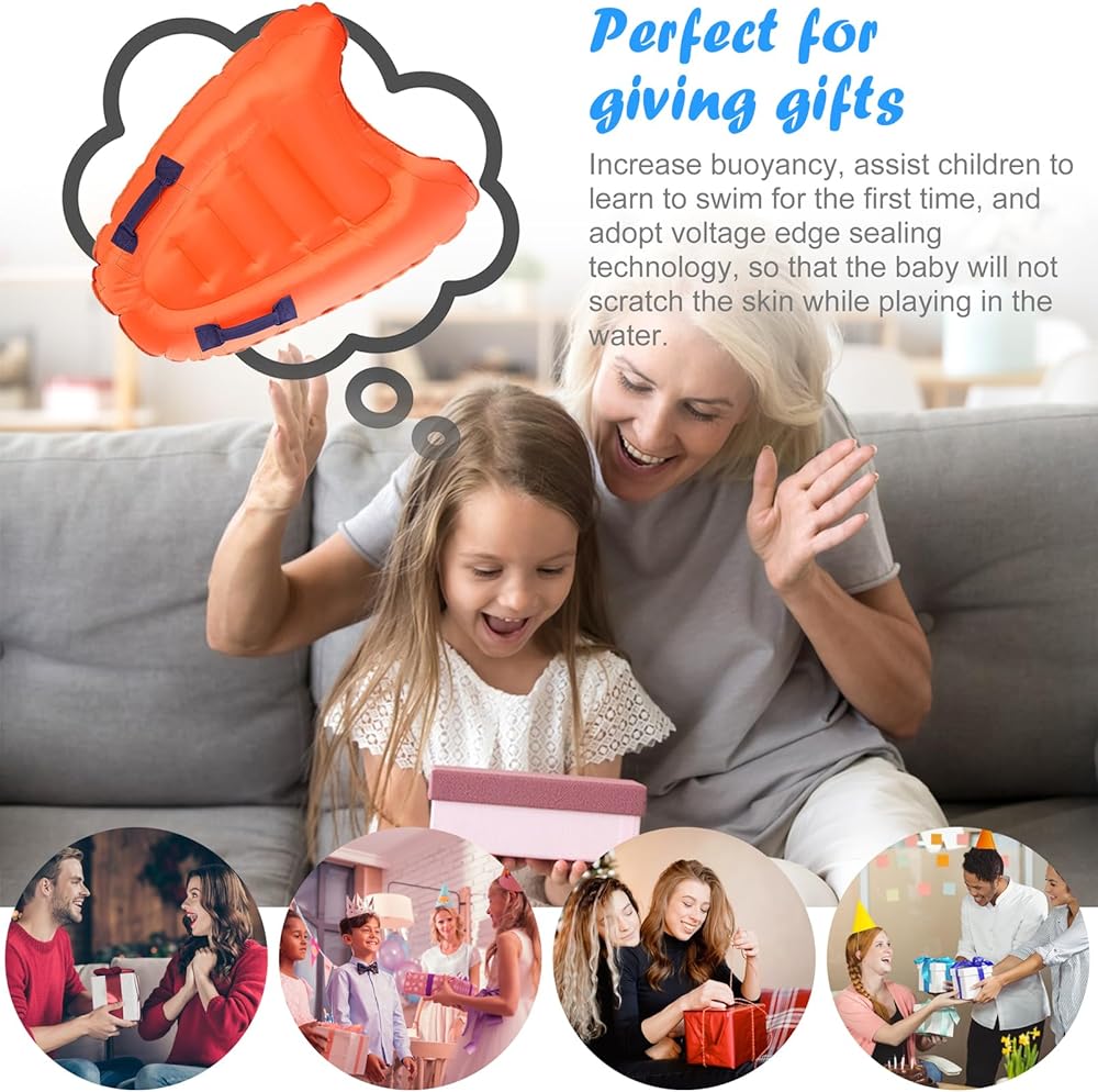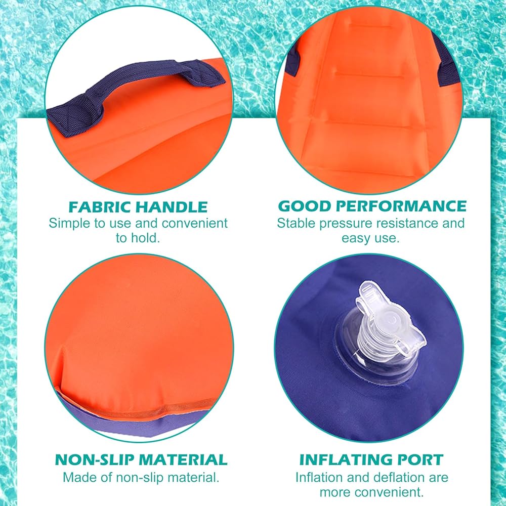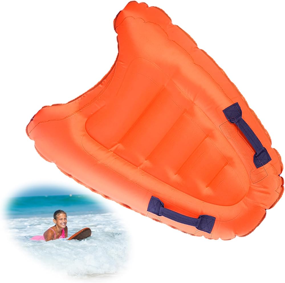 لوح سباحة قابل للنفخ، لوح سباحة محمول بمقابض، ألواح مساعدة لتعلم السباحة، لوح عائم لركوب الأمواج للشاطئ وحمام السباحة (برتقالي)
