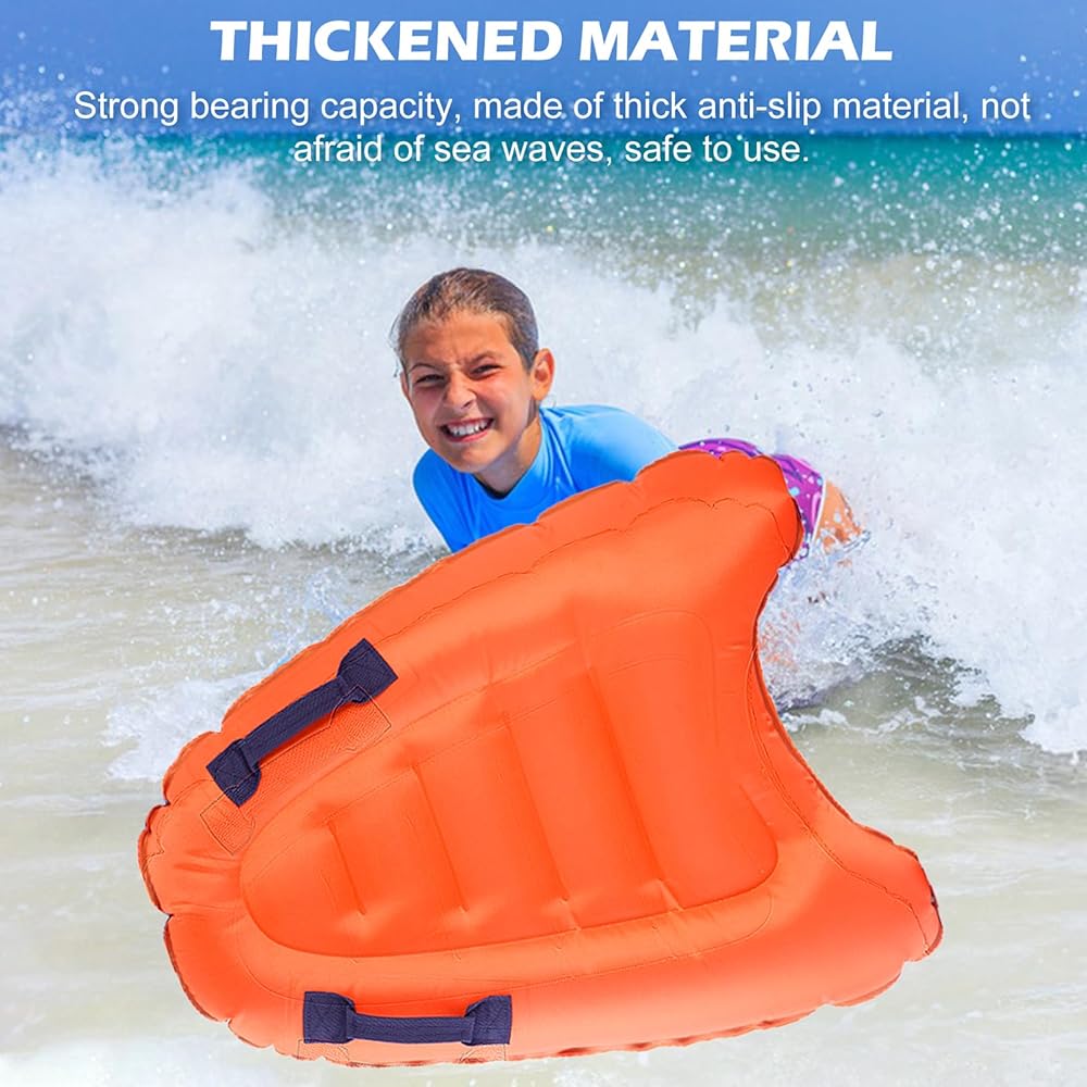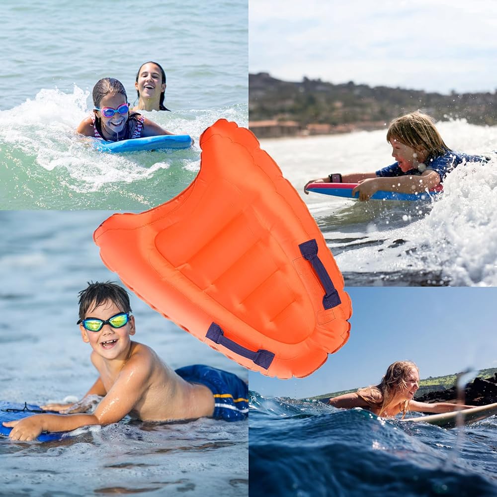 • 【Safe Inflatable Bodyboard】The inflatable wave board with two durable handles for added safety and maneuverability. Bright color and unique shape will bring you happy and safe experience.