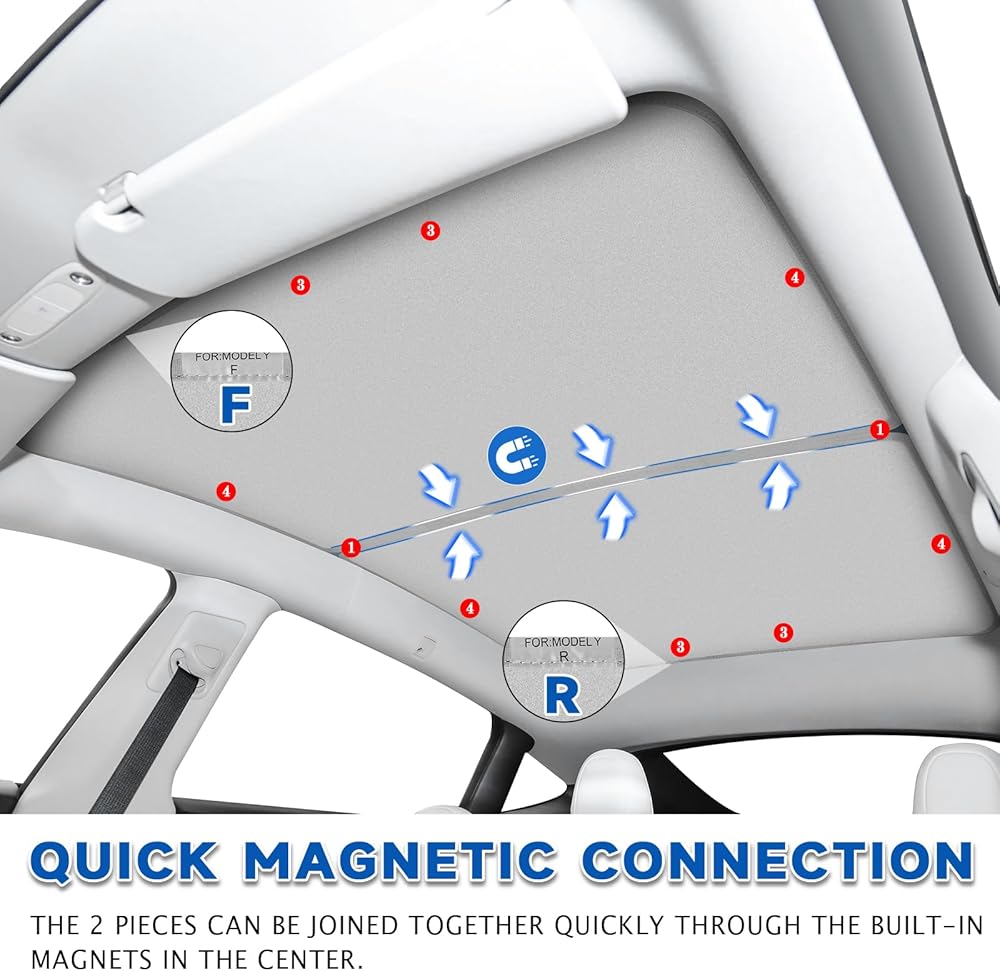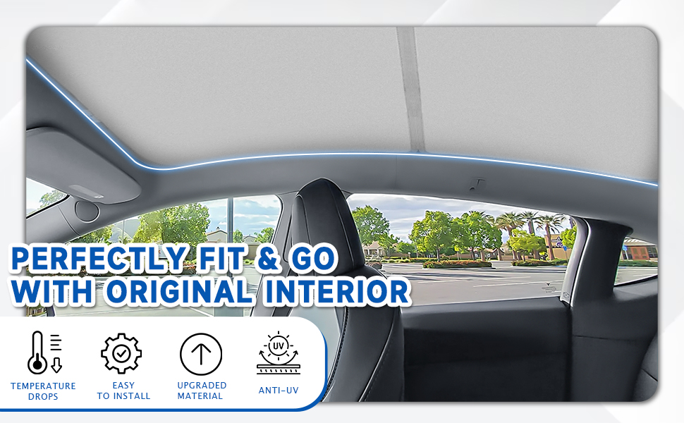 【مظلة شمسية لموديل تيسلا Y 2020-2024】- تم تصميم مظلة الشمس هذه خصيصًا لفتحة سقف تيسلا موديل Y 2020 -2024. يناسب فتحة السقف بشكل مثالي ويتكامل مع الجزء الداخلي الأصلي للسيارة.
