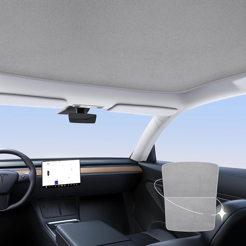 لطراز تسلا Y ظلة سقف فتحة سقف ظل ترقية 4.0 ملحقات 2024 2023 2022 2021 2020 (رمادي من جلد الغزال)