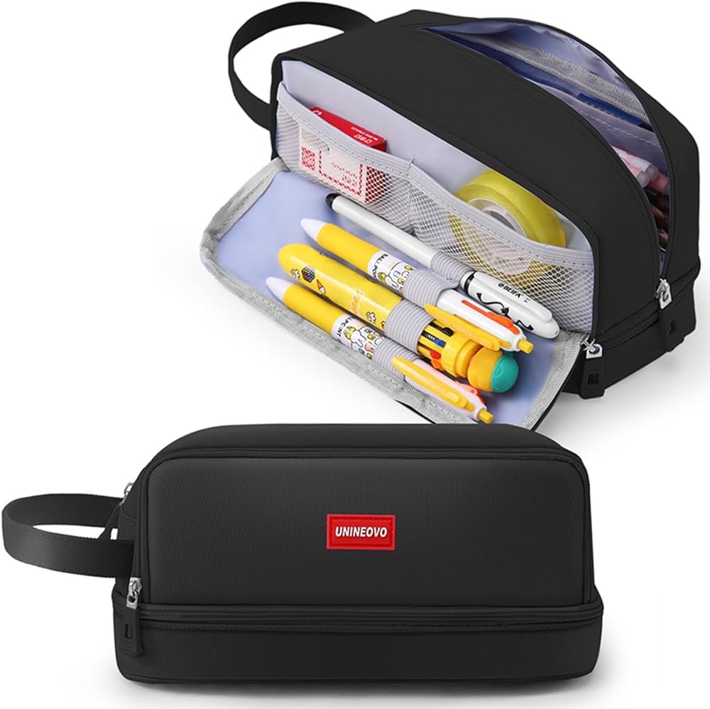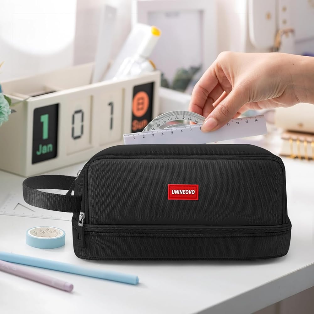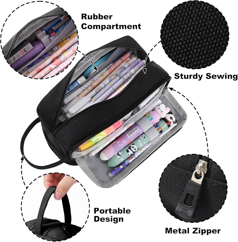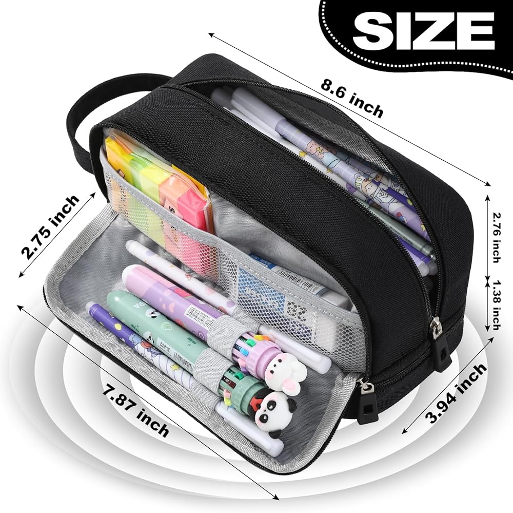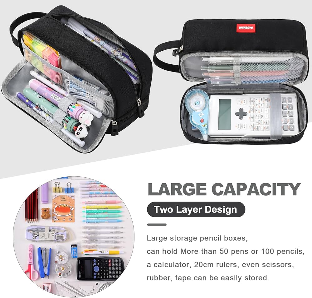 مساحة تخزين لا تصدق - أعلم أنك تريد إحضار جميع أدواتك المكتبية! هذه اللوازم المدرسية اللطيفة ذات الحجرة المزدوجة تناسب احتياجاتك. تحتوي حقيبة لوازم العودة إلى المدرسة على مساحة كبيرة لتخزين 100 قلم وأقلام رصاص وشريط تصحيح مع مساحة كافية لتخزين الآلة الحاسبة والمساطر والدباسات... حافظ على تنظيم جميع أغراضك.