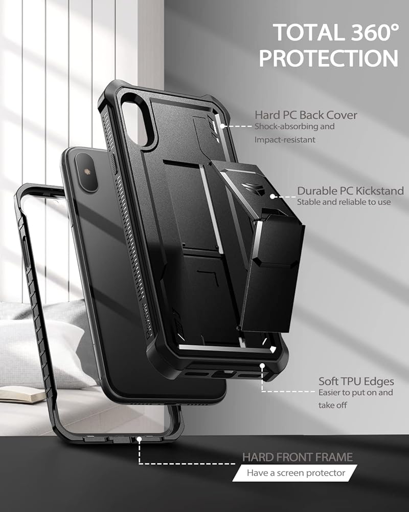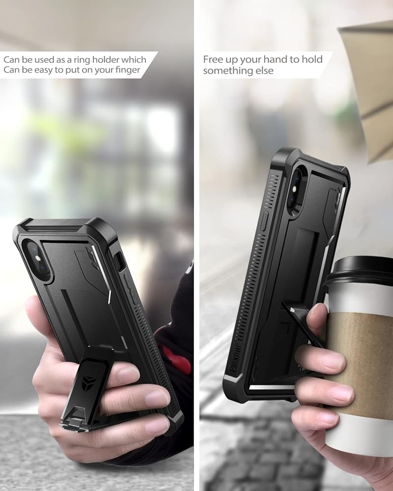 حافظة Dexnor لهاتف iPhone Xs max، [واقي شاشة مدمج ومسند] غطاء واقٍ مقاوم للصدمات عالي التحمل من الدرجة العسكرية لهاتف iPhone Xs max، أسود