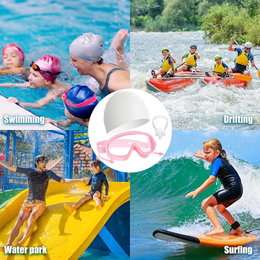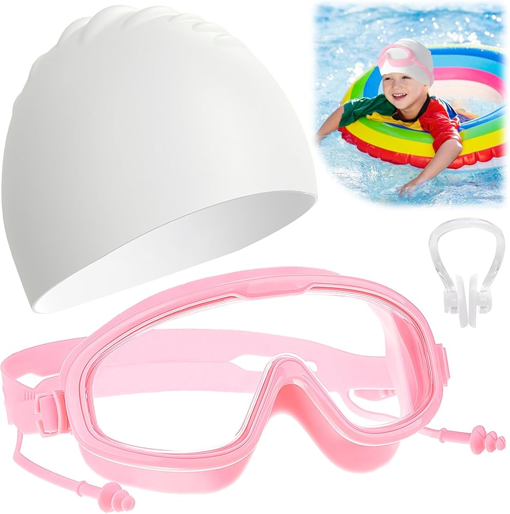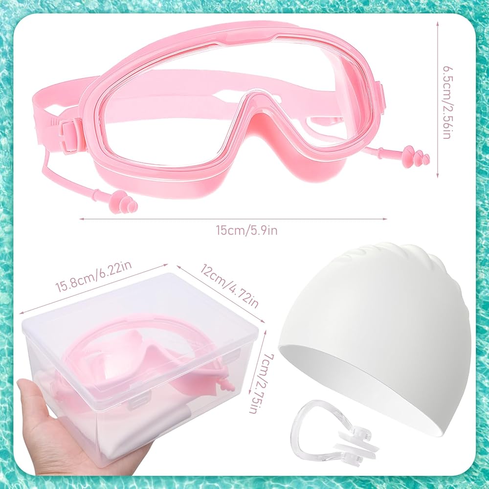 【Wide Application】The kids swim goggles with cap set is suitable for swimming pool, beach, public bath, the lovely pink and white design for girls. Perfect summer gift for 3-12 years children who love to swim or learn to swim.