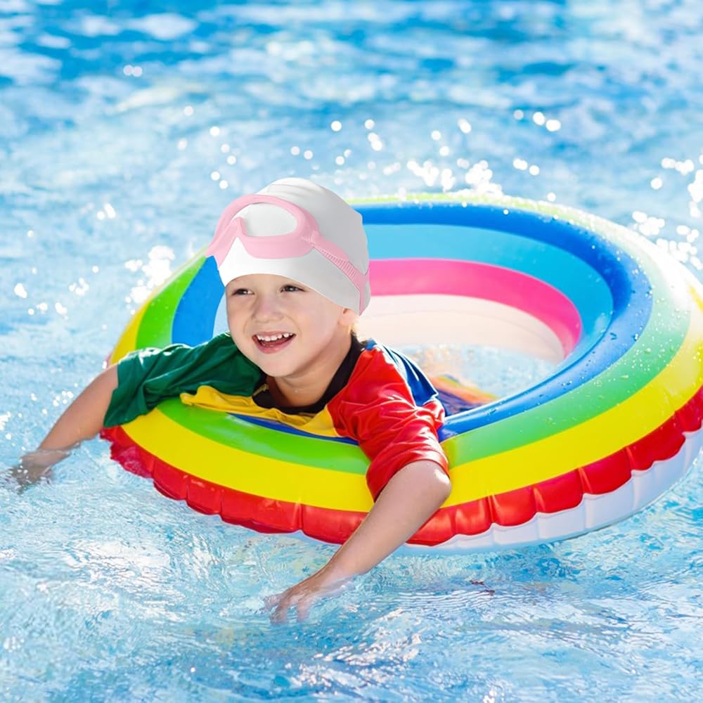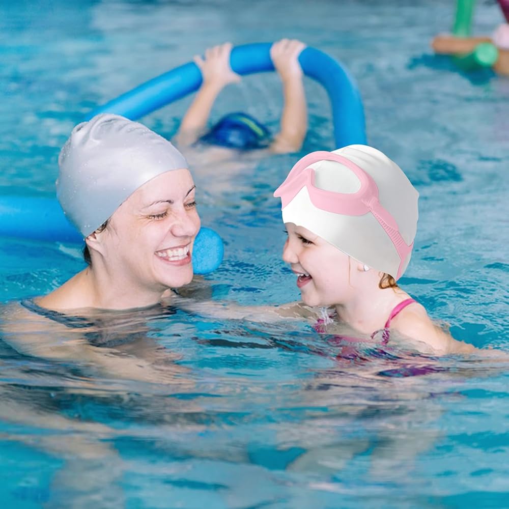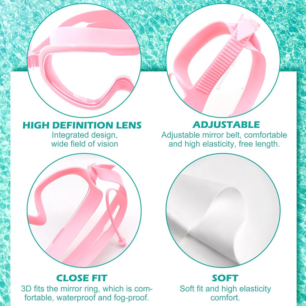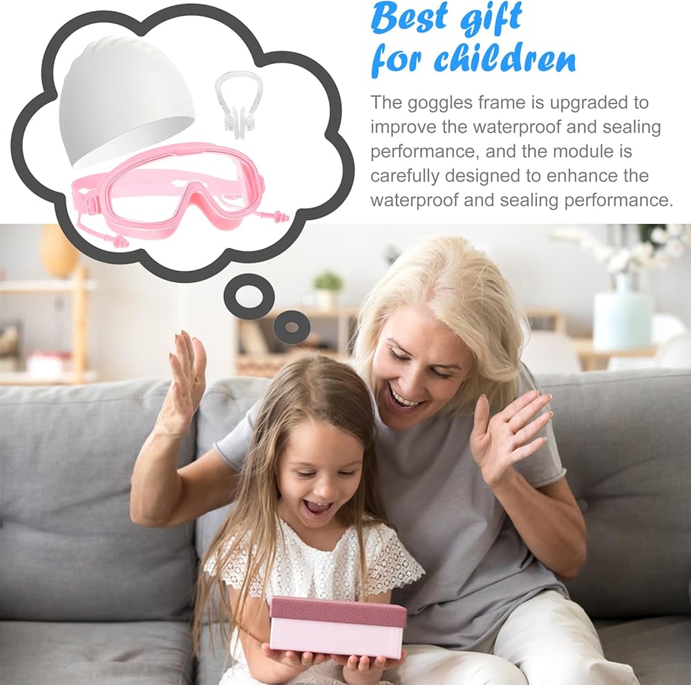 【Wide Application】The kids swim goggles with cap set is suitable for swimming pool, beach, public bath, the lovely pink and white design for girls. Perfect summer gift for 3-12 years children who love to swim or learn to swim.