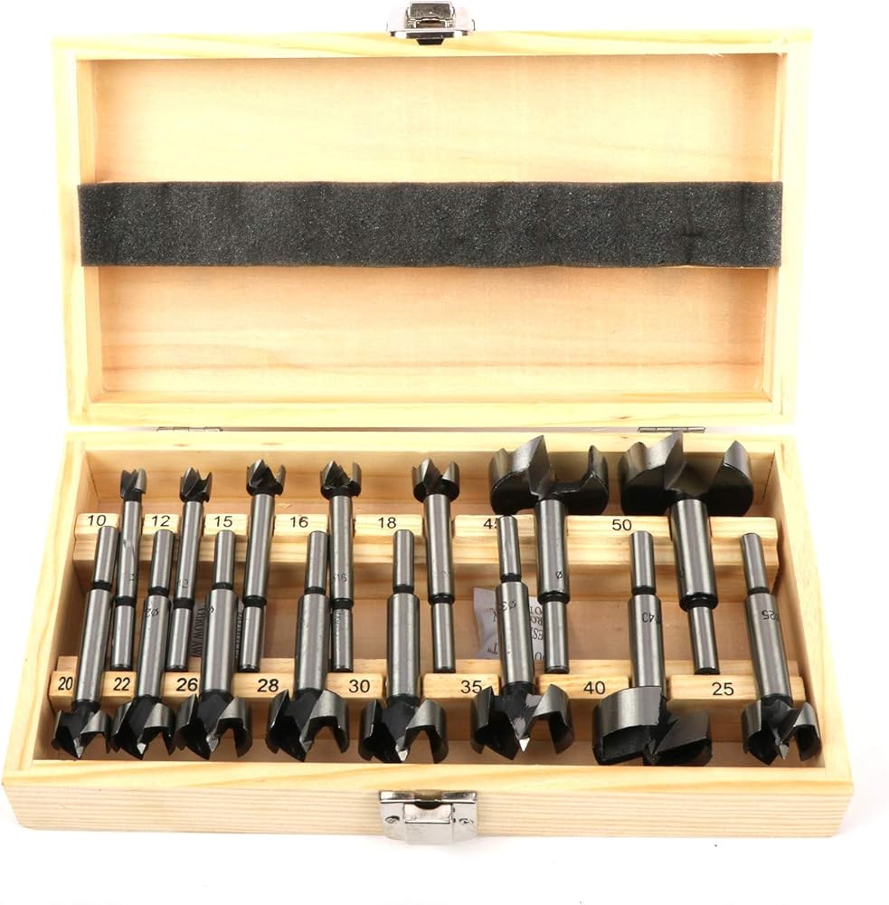 jxgzyy 15 قطع Forstner حفر ريشة 10-50 ملليمتر شقة الجناح حفر بت الكربون الصلب كربيد فورستنر بت عالية السرعة أداة خشبية مع صندوق تخزين خشبي للثقب الصحافة
