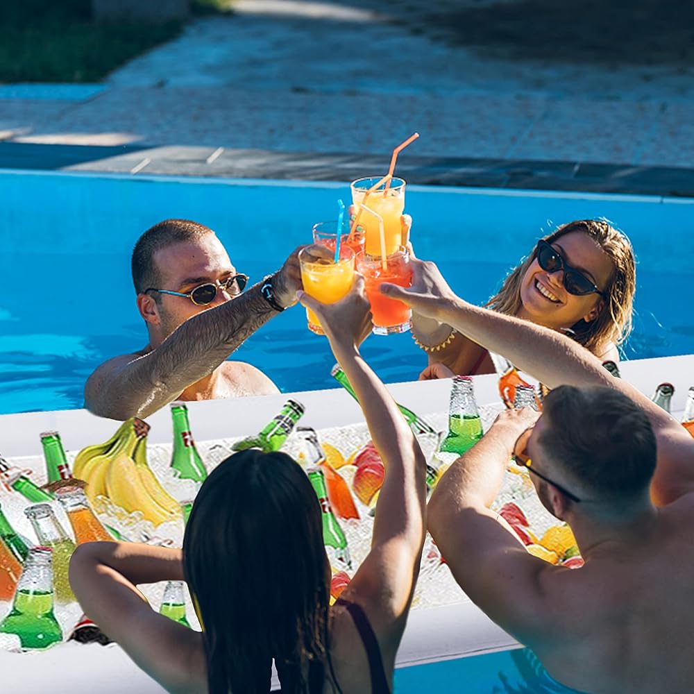 • مثالية لأي مناسبة: هذه المجموعة هي خيار ممتاز لأي تجمع. سواء كان عشاء عائلي رسمي، أو حفلة بجانب حمام السباحة، أو حفلة شواء غير رسمية، فإن قضبان التقديم القابلة للنفخ هذه تعزز إعدادك من خلال الحفاظ على الأطباق باردة وشهية.