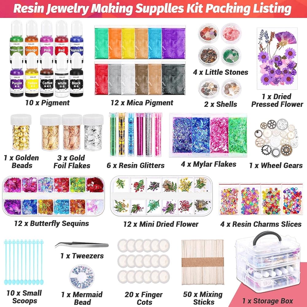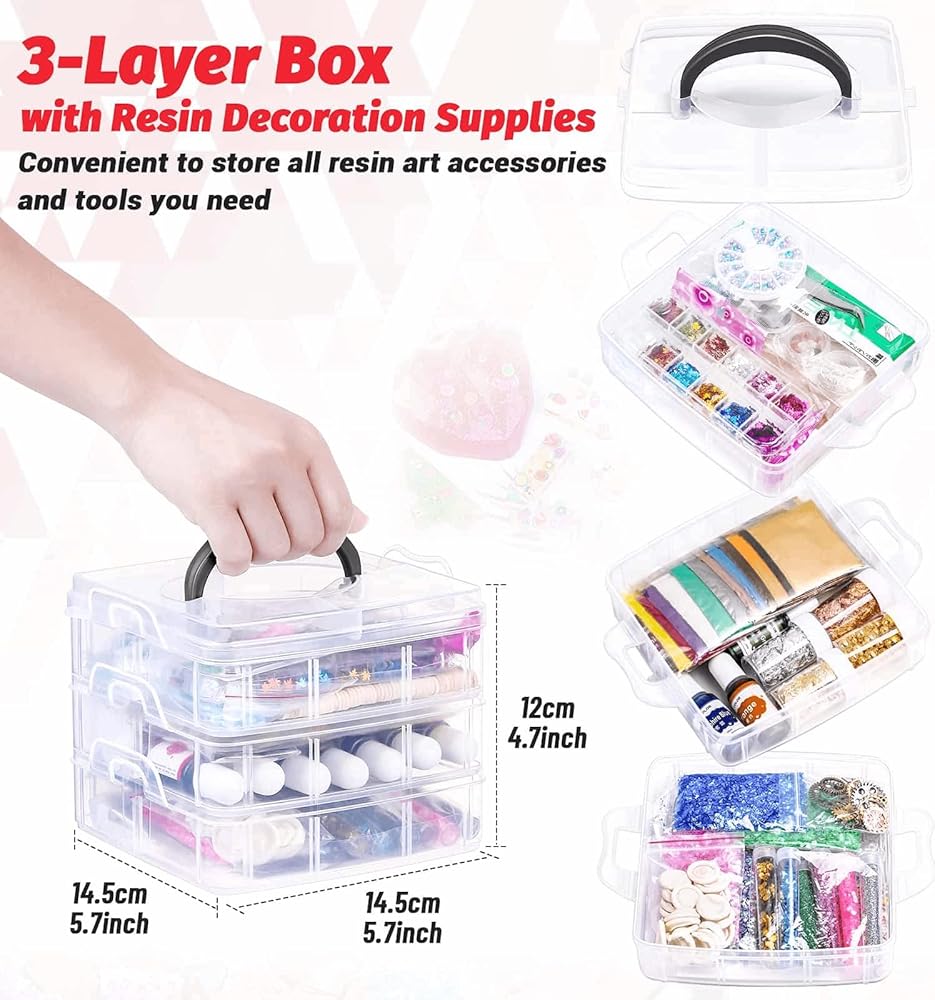 ☘️【سهلة الاستخدام والتخزين】تحتوي مجموعة صنع المجوهرات المصنوعة من قوالب الراتنج على عصي الخلط والملاقط والملاعق الصغيرة وأغطية الأصابع لخلط راتنجات الإيبوكسي AB. يعتبر صندوق الحاوية البلاستيكية المكون من 3 طبقات مثاليًا لتخزين مستلزمات الإيبوكسي. جميع مستلزمات قوالب صب الراتنج مقسمة إلى أقسام مختلفة ومنظمة جيدًا في حاويات بلاستيكية ثلاثية الطبقات قابلة للحمل والتكديس، وهي مثالية لتخزين ملحقات الراتنج الخاصة بك.