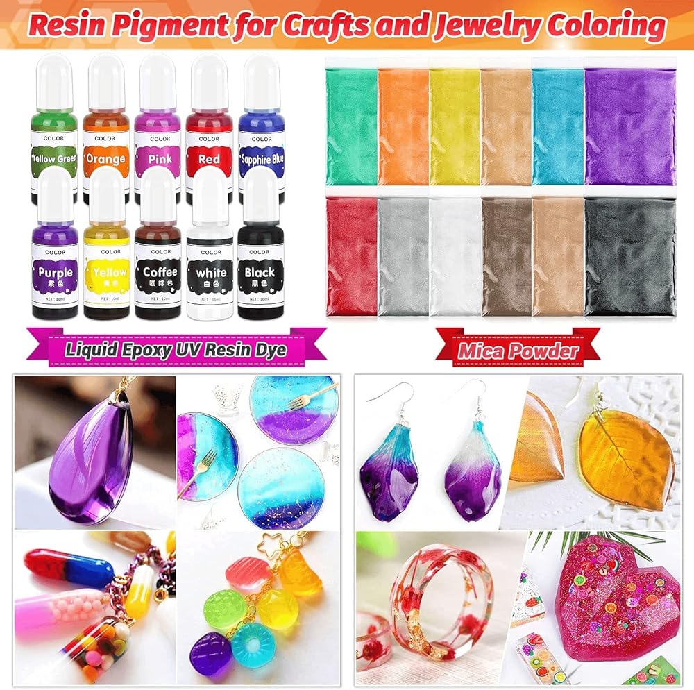 ☘️【أصباغ الراتنج الملونة لصنع المجوهرات】مجموعة إكسسوارات تزيين الراتنج هذه تحتوي على 12 لونًا من أصباغ راتنج الميكا، و10 قطع من الصبغة السائلة من راتنج الإيبوكسي، المزيد من مطابقة الألوان، تمنحك تأثيرًا بصريًا أكبر. تلوين الراتنج عالي التركيز، فقط كمية صغيرة، وإضافة المزيد لتحقيق الظل المطلوب.